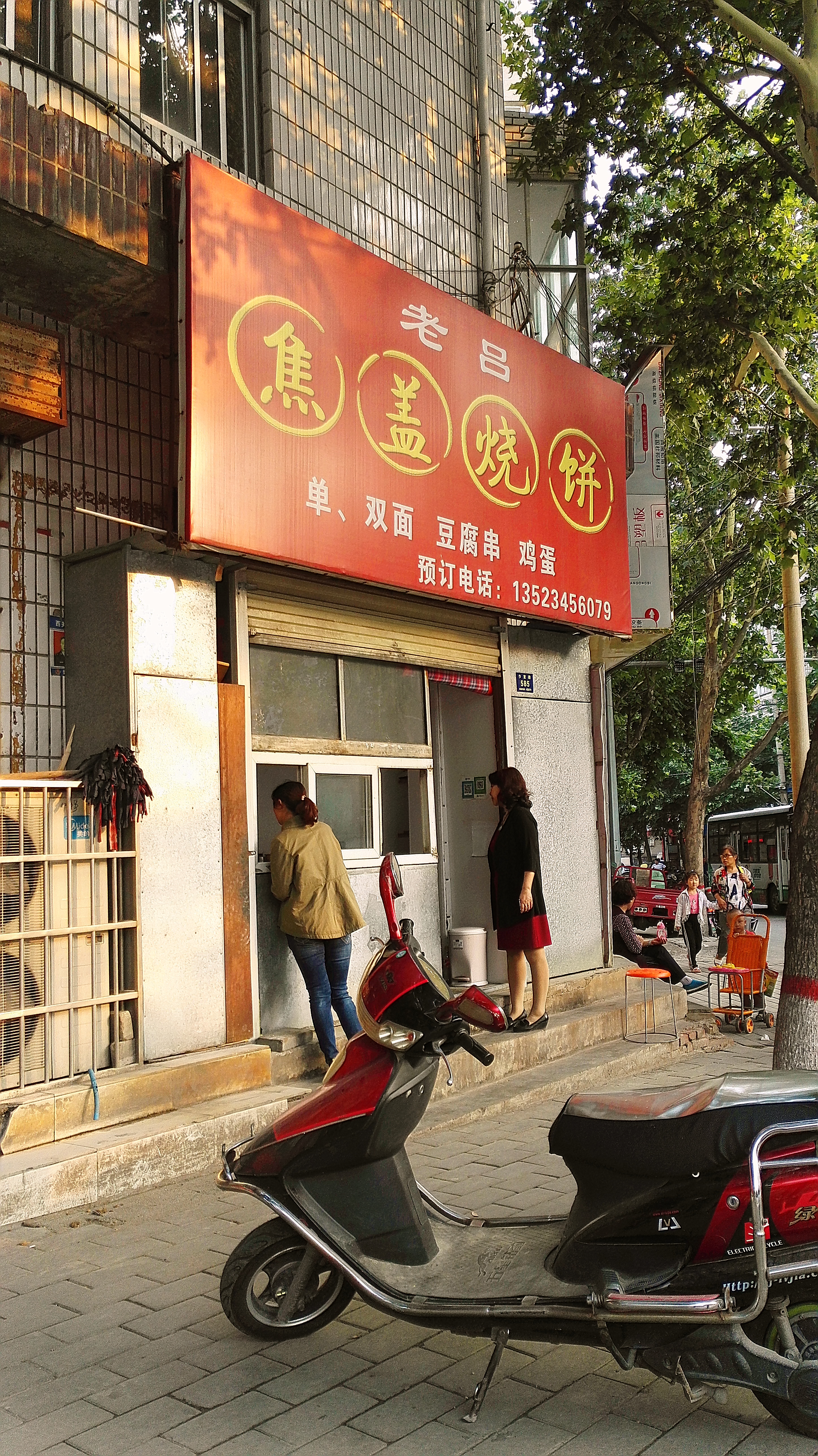 烩面馆出来,路口卖焦盖烧饼的,3块钱买了两个,一个下肚一个留着明早山上填肚子。焦盖烧饼算是登封的小吃吧,大街小巷的很多小店面售卖。