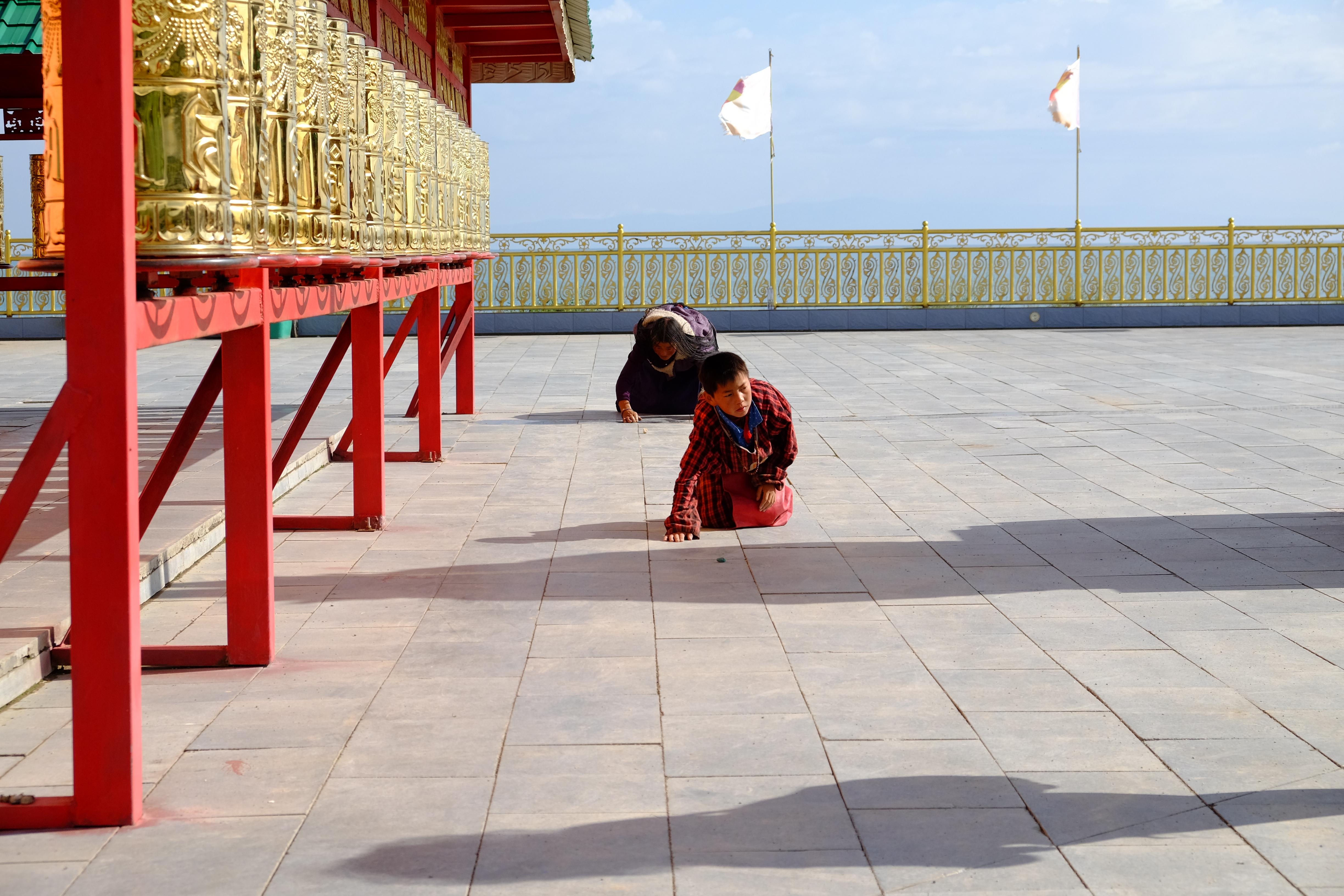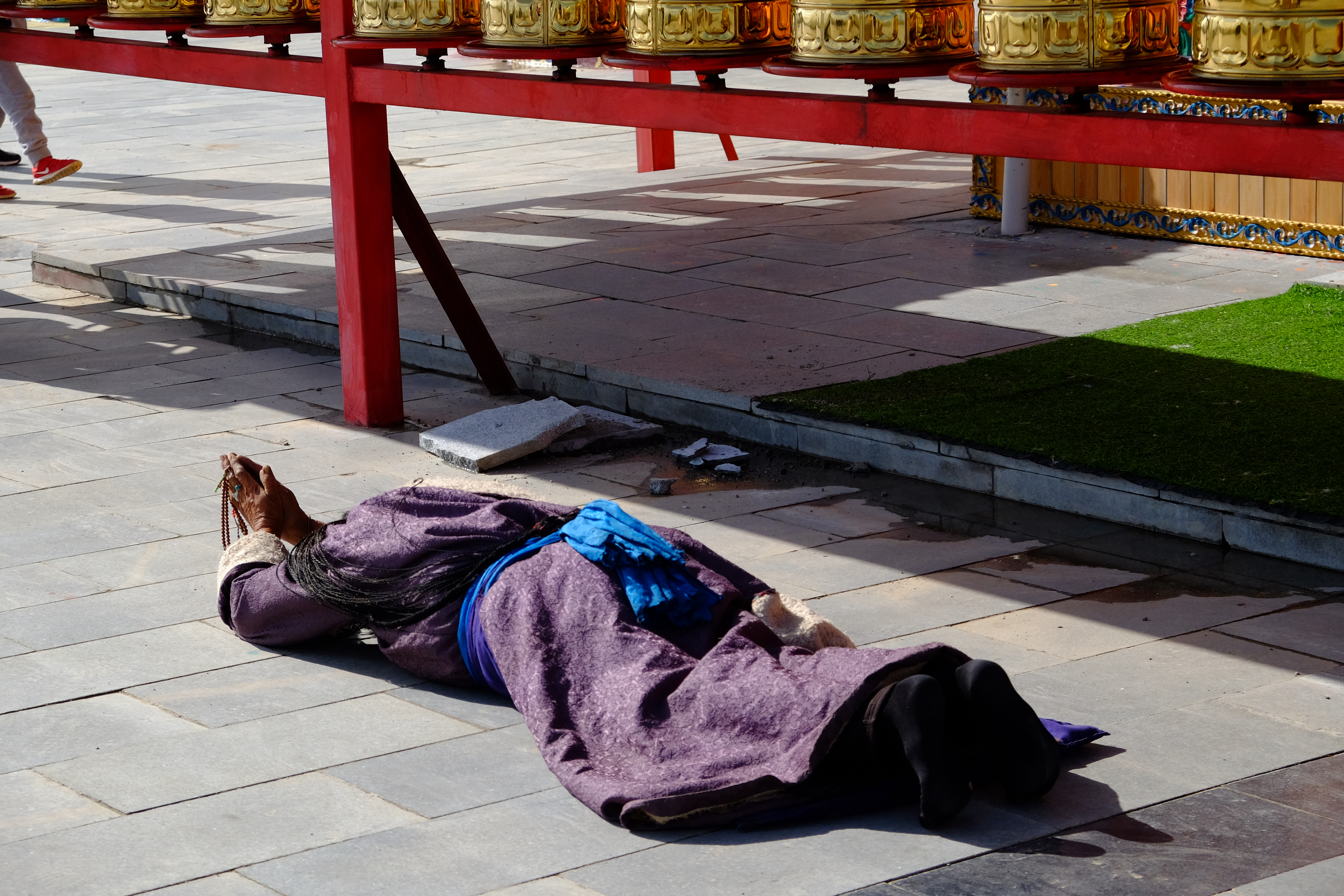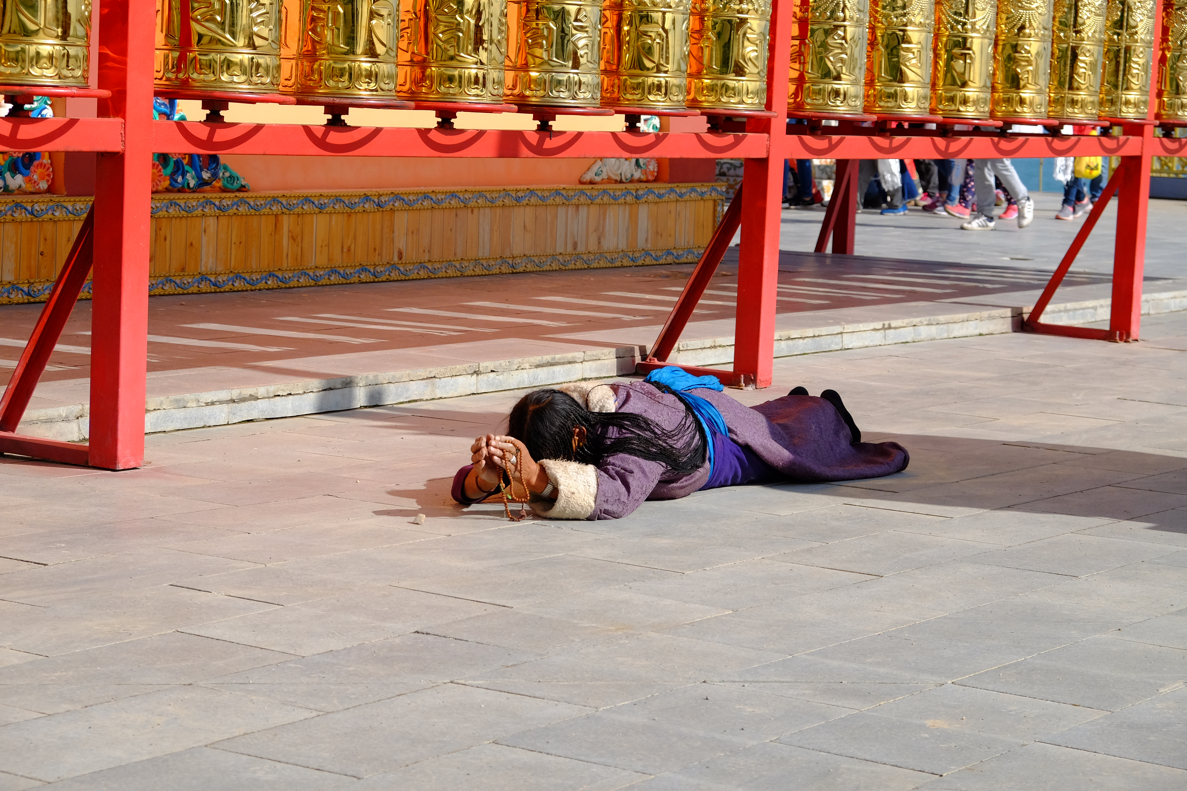 转经筒周围一直有磕长头的藏民,他们的眼神坚定而虔诚;
