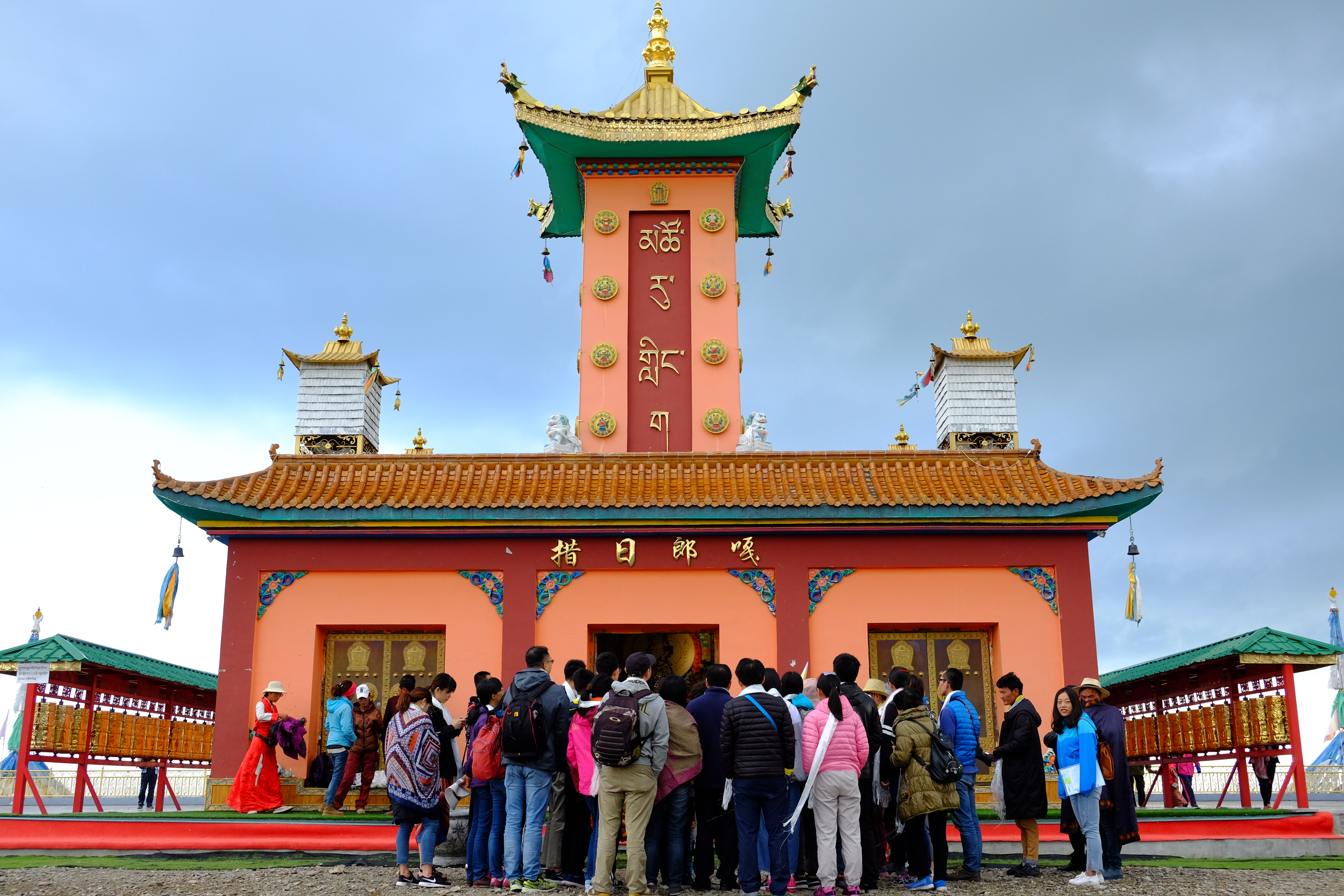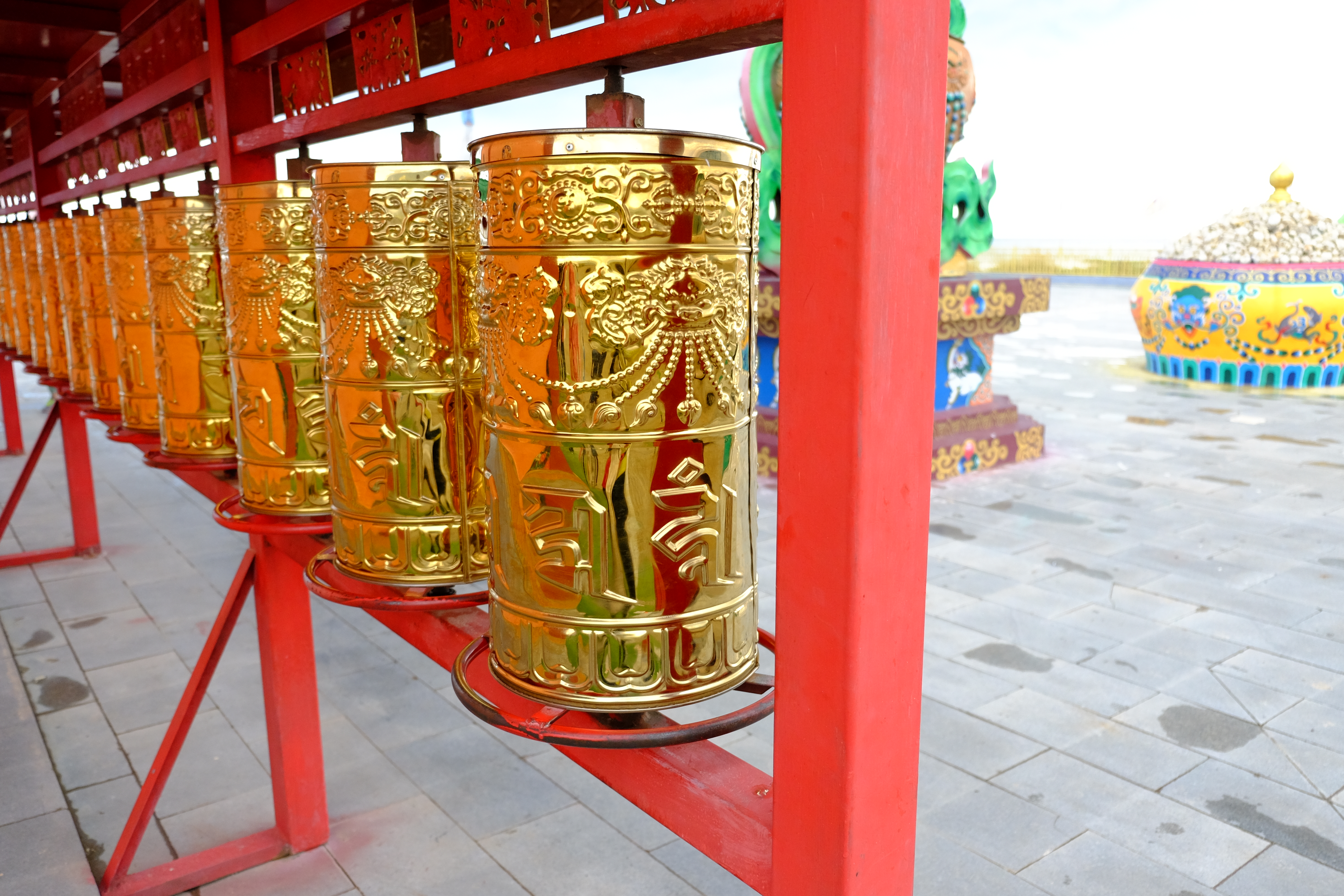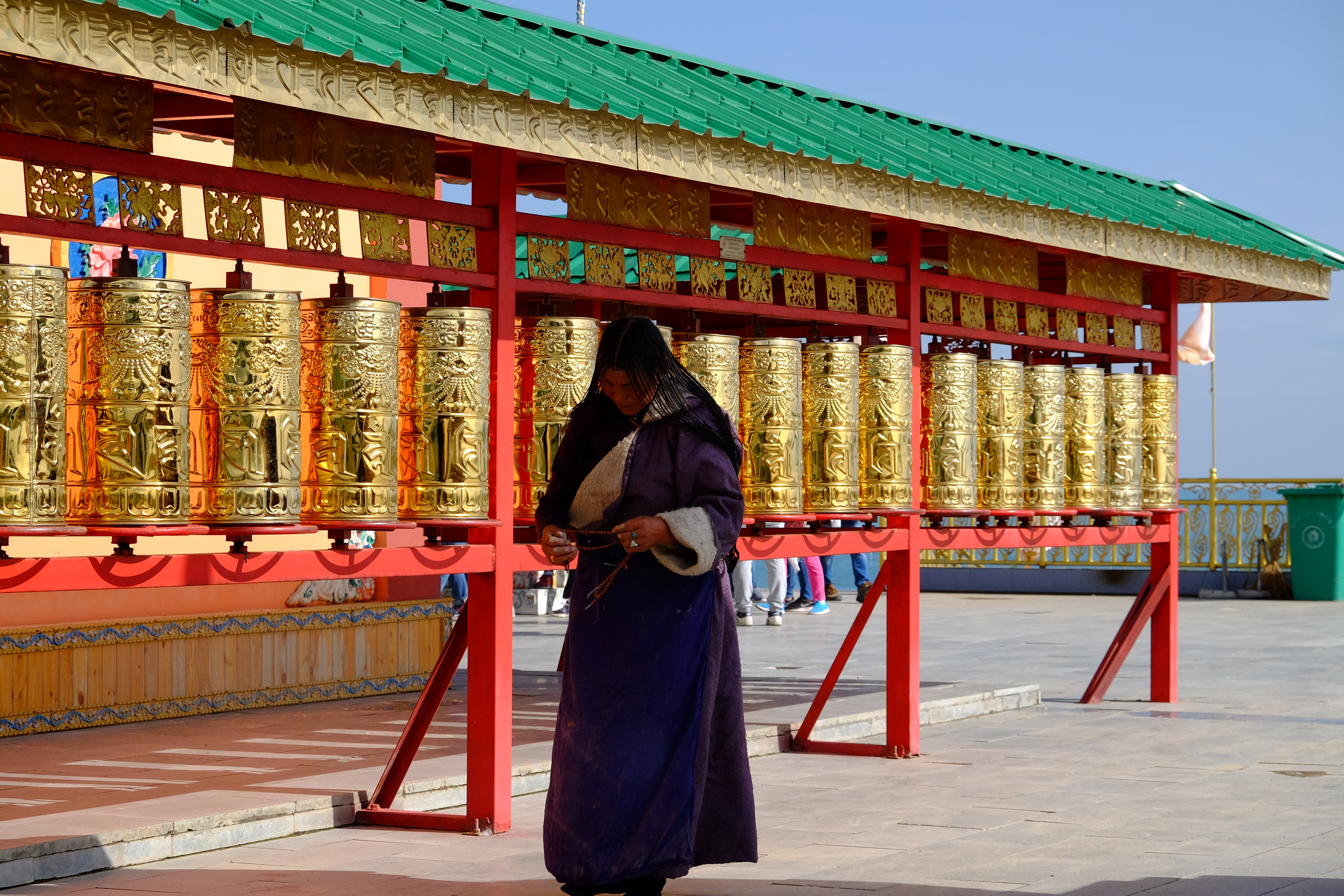 转经筒周围一直有磕长头的藏民,他们的眼神坚定而虔诚;