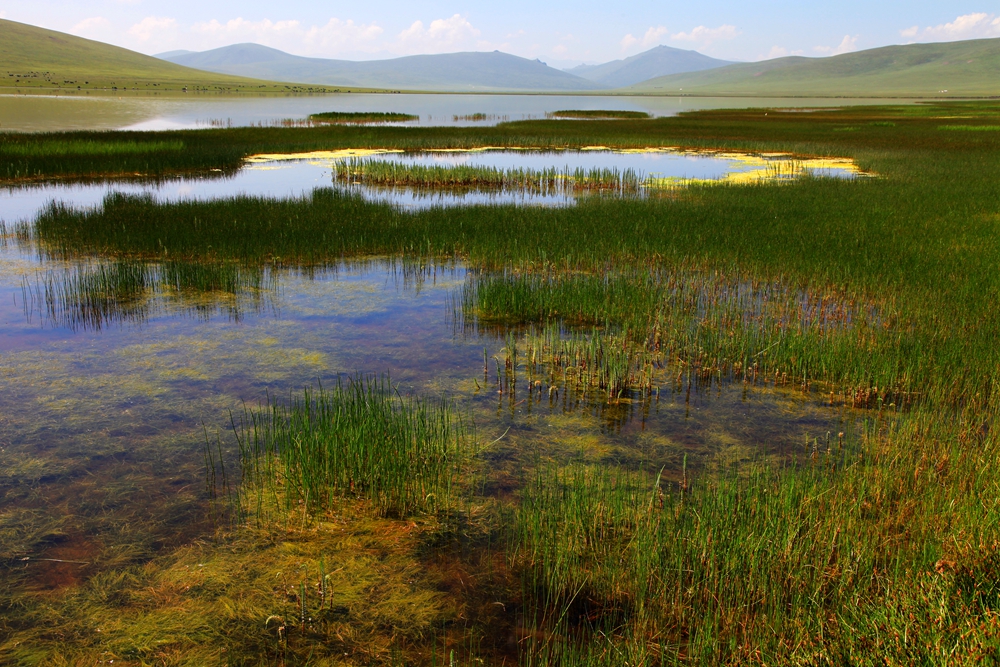花湖:湖心漂浮着嫩黄色的浮萍,低浅的沼泽水遮不住茵茵绿叶。。。
