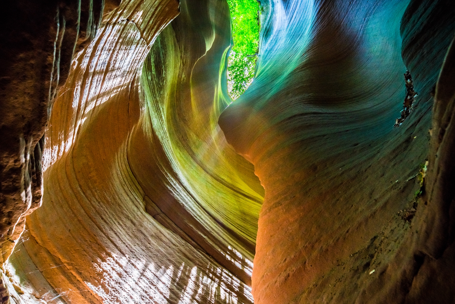 位于甘泉县雨岔村,大约几亿万年前,陕北发生过强烈的地震,一座黄土大山分开一条大裂缝,又经过几百年雨水冲刷,慢慢的形成这样一个峡谷,这也是我们今天看到的甘泉雨岔峡谷,都说与美国的羚羊大峡谷极其相似。