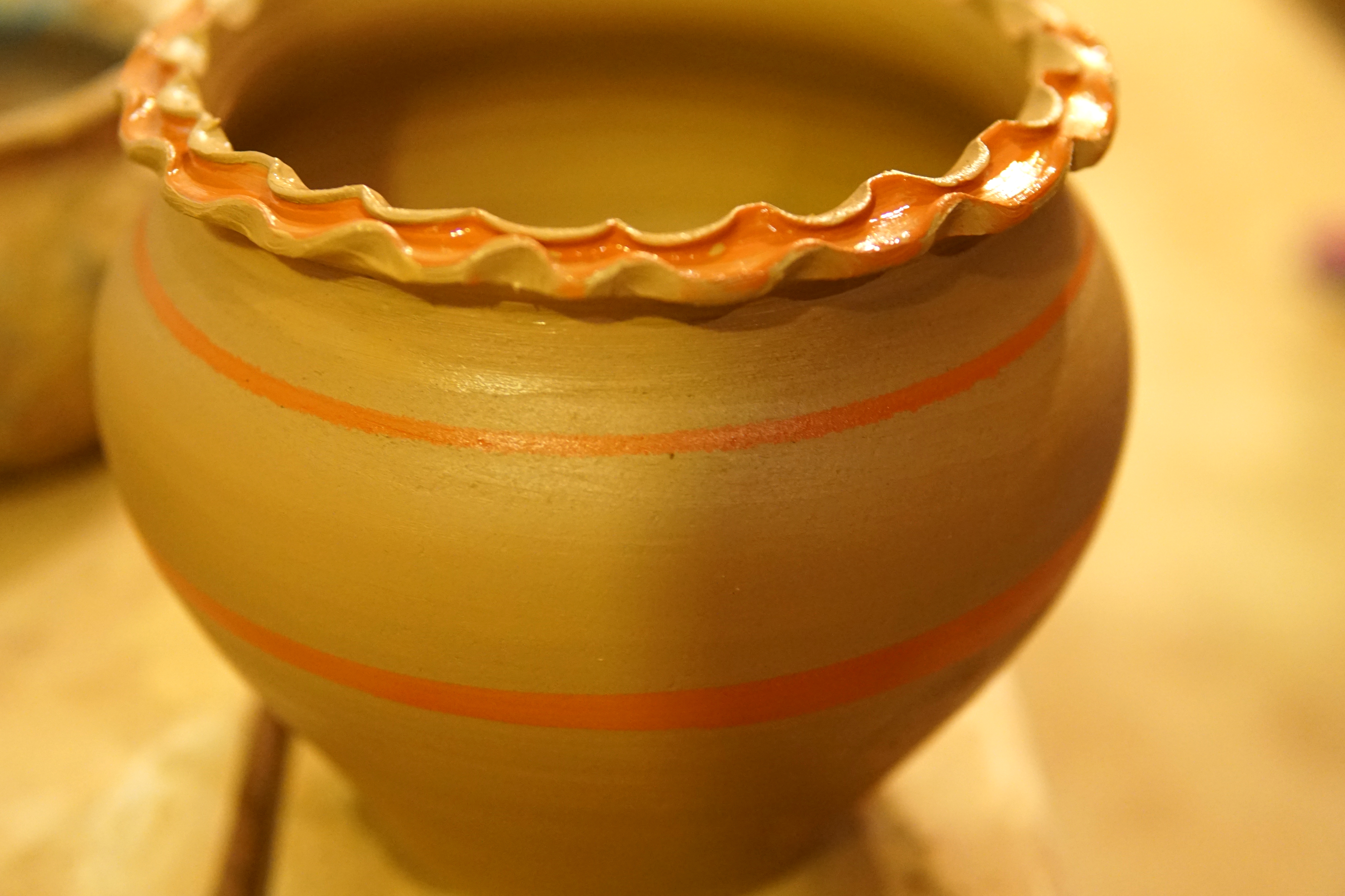 我们参观了一位非常有名的陶瓷手工艺人,我们称他为“爱因斯坦”,因为长相太像了。这是他私人的工作室,进去后他会给你演示陶罐的做法,也会拿出其中一个陶罐让你站上去,却踩不碎陶罐,配合他的人,他会赠送你他亲笔签名的陶瓷小杯子,我就得到了一个哦!