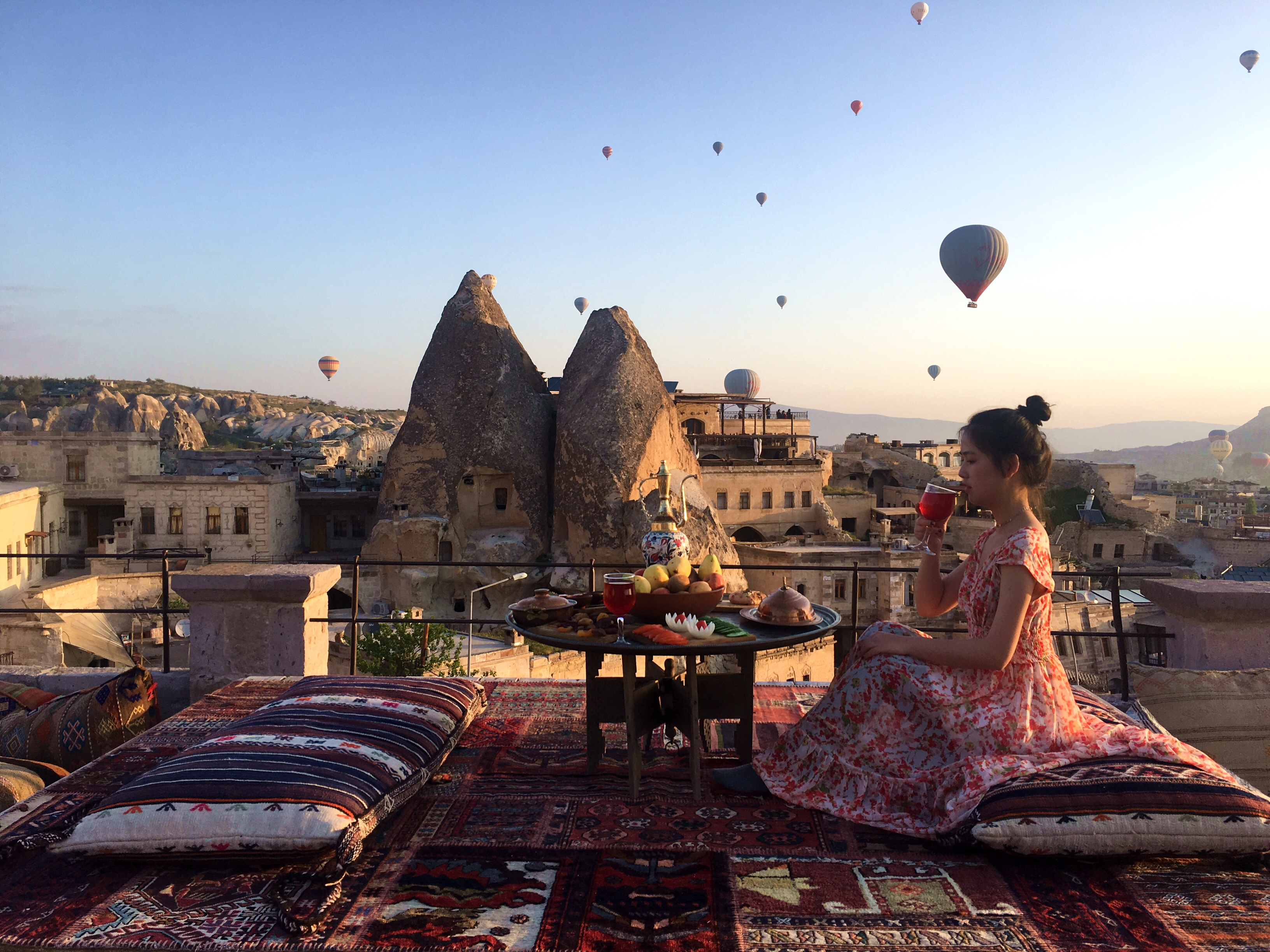 落落一直在催我,很多人也都在期待这篇帖子,于我而言,这是一次真正的旅行,是我们俩个摆脱了东南亚终于冲向不算欧洲国家的土耳其,其中经历过机票涨幅,导航不好用,在原地绕圈圈,找不到景点,没有适合中国胃的餐厅,火车中途坏掉,被棉花堡推销热气球的人凶,夜里打出租车出租车司机却找不到路,尽管如此,还是想说,这是一场浪漫的土耳其。惊心动魄的热气球,犹如月球表面的卡帕多奇亚,以及每个善良的土耳其人的微笑,走在路上,会有陌生的脸庞送你一枝花,并祝福你“good luck”,伊斯坦布尔蓝色清真寺外收到一群小女孩的小礼物,海盗船上我们把游侠客的百变魔术头巾以及身上所有的中国硬币送给他们,找不到阿斯潘多斯 剧场时,一个人不知道就问另一个人,最后一群当地人围在一起给我们研究如何去到那里。以及火车坏掉时,我们坐上Minibus,到站后司机主动招呼我们下车(如果不是他告诉我们,我们还在车上睡觉),全程的自由行,每一段路都是公共交通,感谢每一个车站的车调,叫车去酒店没有被坑,每一个酒店老板都很Nice,这就是所谓的“好运常伴”吧!那几天的朋友圈被自己刷屏了,很多人都在等这篇攻略,希望能帮到更多的人!