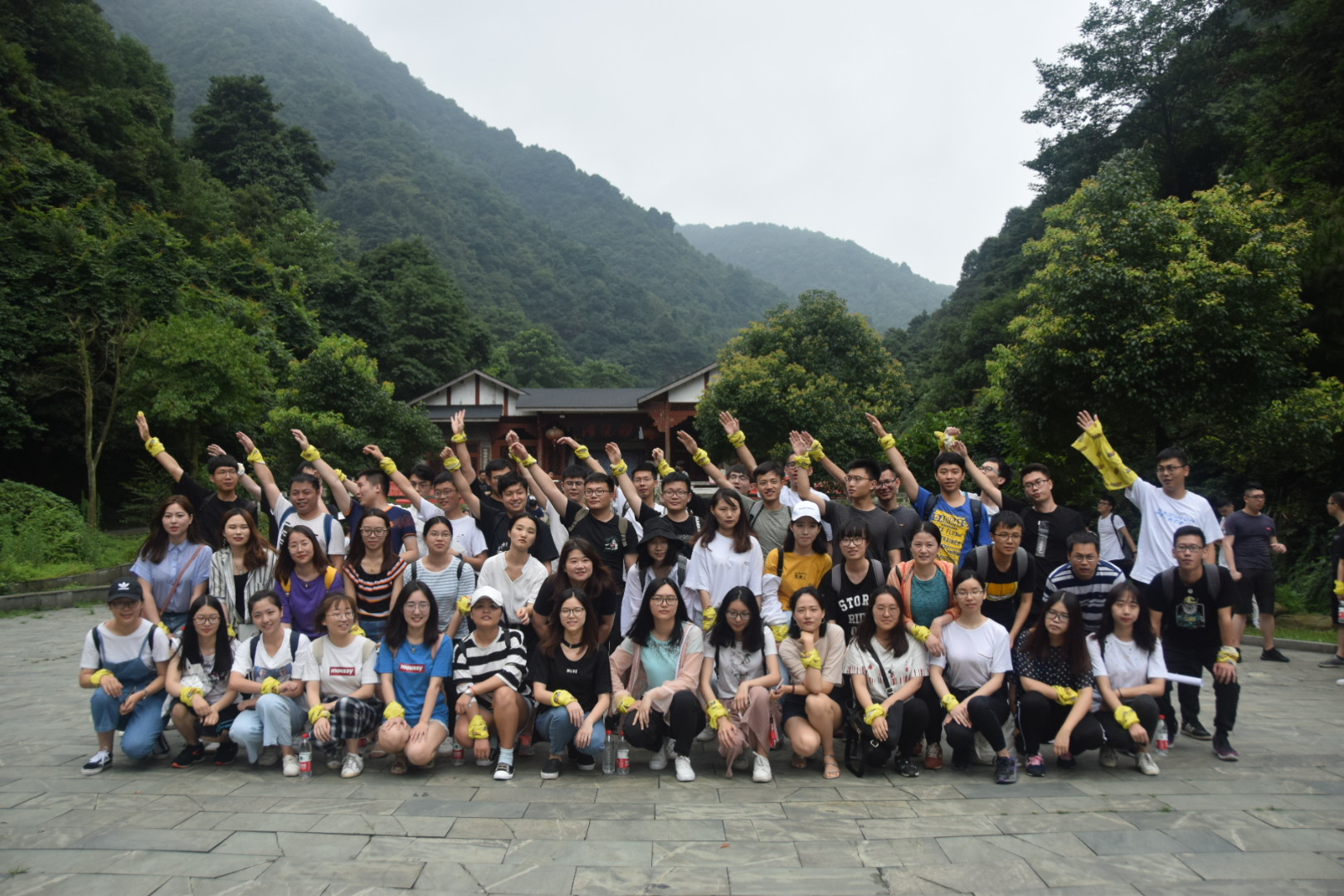 一小时的车程抵达白龙潭,团队拓展活动在大合照后井然有序开展起来。第一项:按1至8号分8个小组。第二项:万里长城永不倒。153人围成大圈,蹦蹦跳跳,唱着茉莉花,在教练一声令下,全体坐在身后小伙伴的膝盖上,蔚为壮观。第三项:我们是最棒的。每组选队长,喊八字真言口号,画队徽,取队名,每个小组精彩展示,八仙过海各显神通。第四项:无敌风火轮。每队分成两个小组,每两人间脚腕绑牢绳带,侧面移动接力赛。12点左右开始午餐。下午13点30分开始团队进山集体打卡并完成3项活动要求,最后合照返回。恭喜第三组取得冠军。