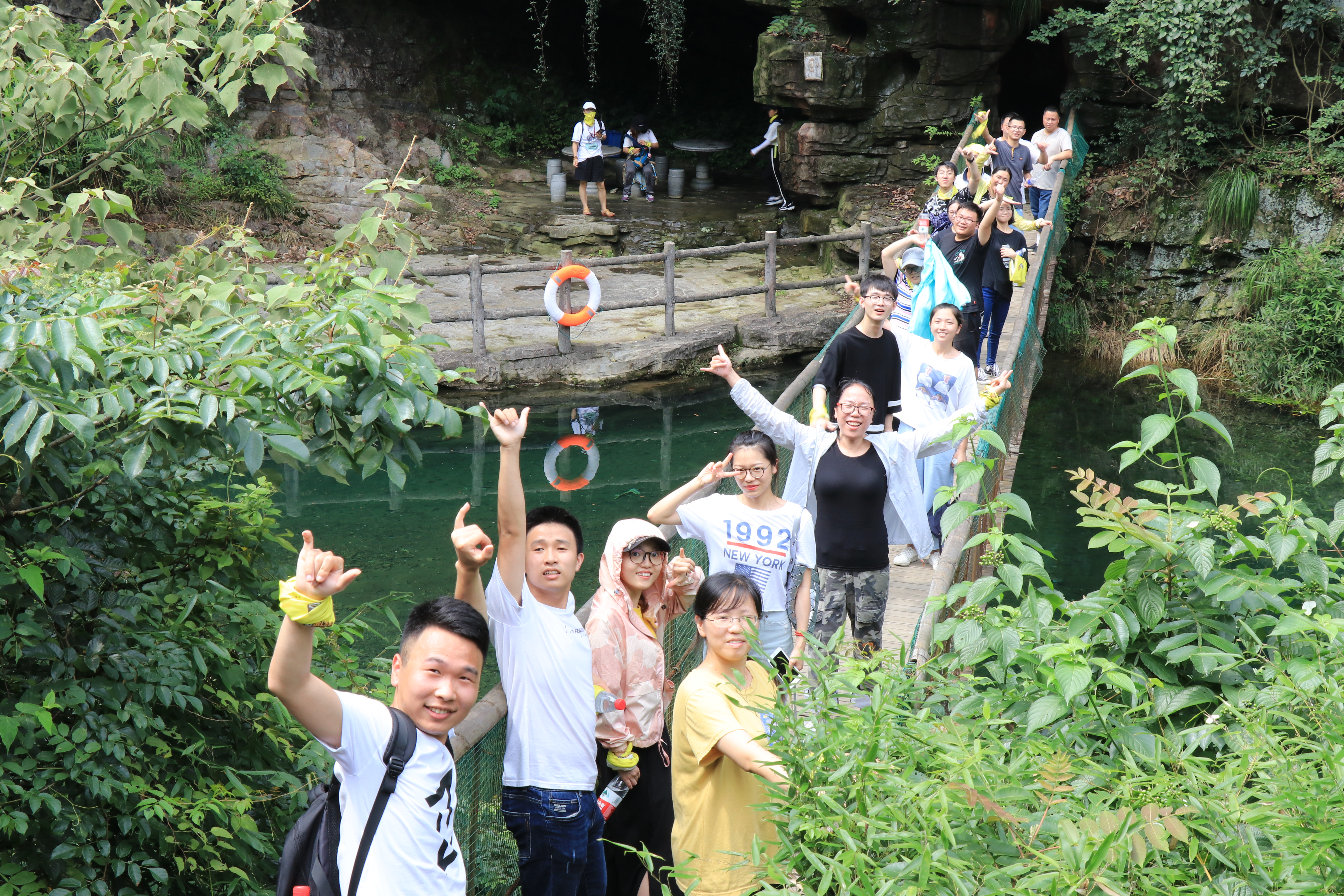 7月6日会同8名领队,带领153人,乘坐4辆大巴浩浩荡荡从天际大厦到白龙潭拓展基地开展团队活动。白龙潭拓展培训基地位于杭州西南郊的西湖区龙坞乡境内,背靠牛潮山国家森林公园,山林茂密,峡谷幽深。唐代李白曾有诗:闻道天堂龙门山,悬崖飞瀑白龙潭。不知李白诗中的白龙潭是此龙潭还是彼龙潭,只是感觉李白大概不会走的如此广阔而细致。