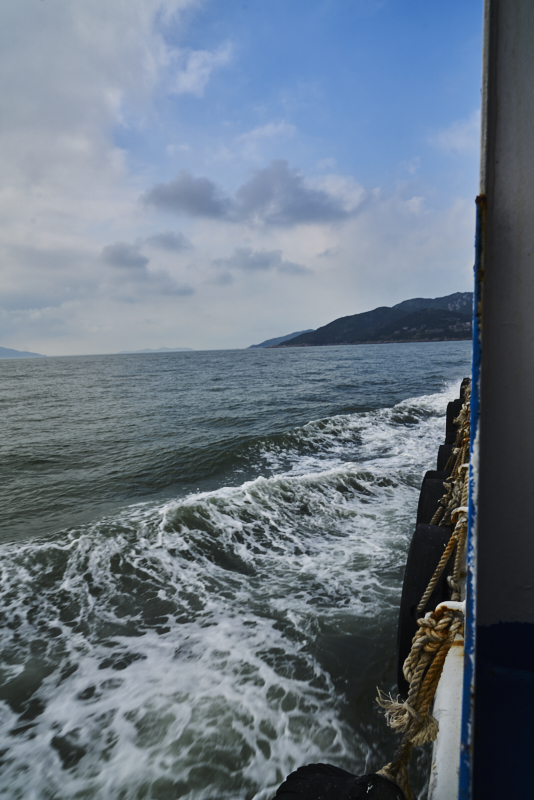 去白沙岛上海上,天上的云层开始变得厚实了些,阳光在云层间时隐时现。虽然在老钿房沙滩可以依稀看见白沙岛,但从樟州港白沙岛码头出发,却是要朝北绕个弯。