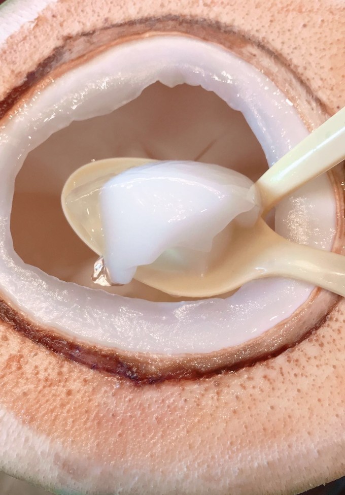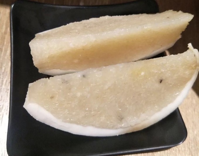 里面的肉是一层白色一层透明的,透明的感觉有点像我们小时候吃的冰凉粉