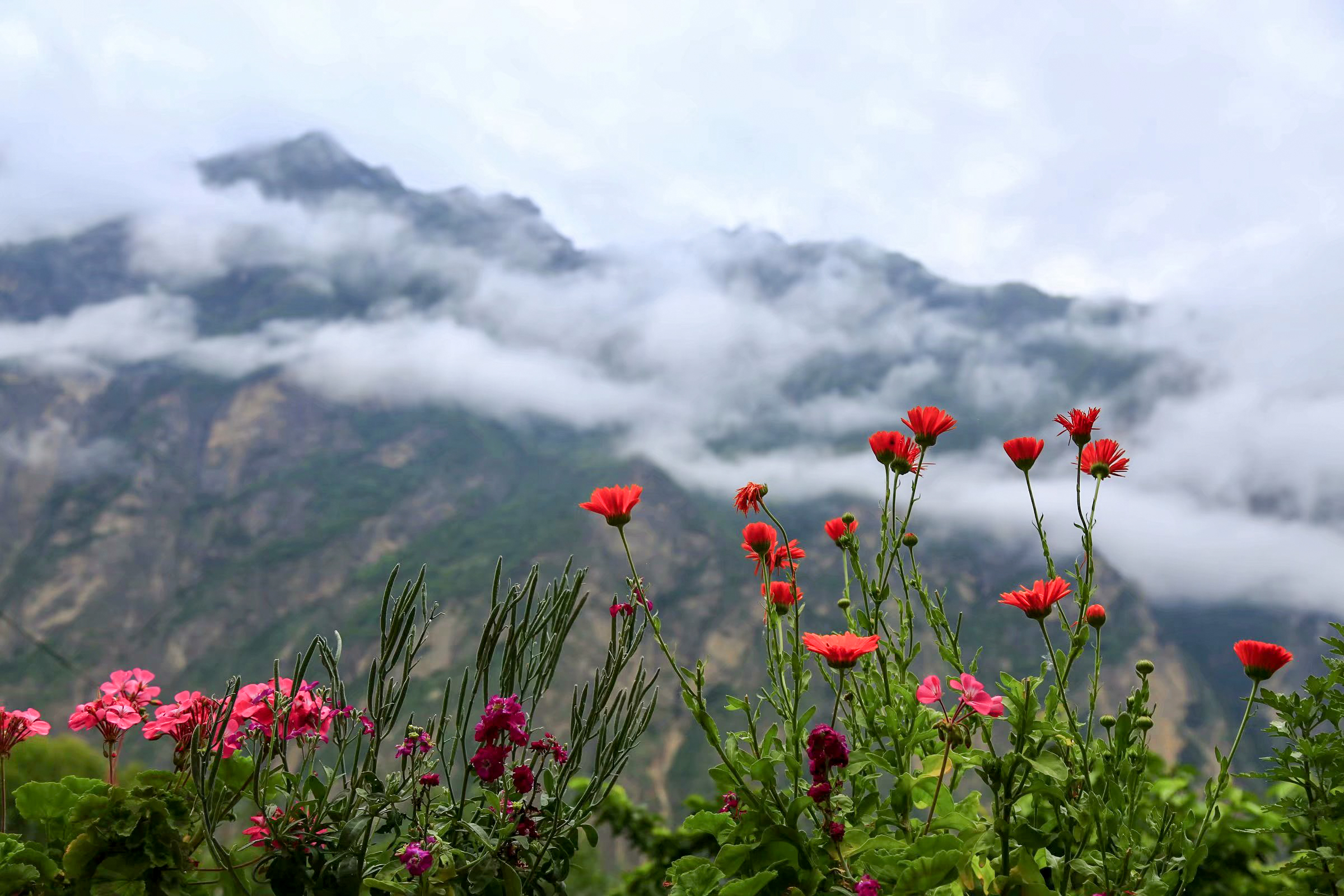 穿行在去莫斯卡的峡谷中,山间的雨雾缭绕景色十分漂亮,河边还有盛开的杜鹃花,流连在青山绿水间心胸随之畅快开阔。从磨子沟大桥到莫斯卡村大约需要2个多小时的车程,已经修通的水泥路很好走,不过由于是乡道,有会车的时候还是要比较小心的,中途先经过牧业村,牧业村离莫斯卡村约10分钟的车程,也是水泥路,我们晚上就住在牧业村,牧业村海拔会稍微比莫斯卡村低一点。