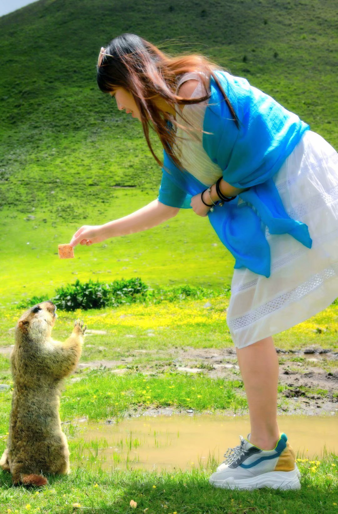 从学校出来我们又继续带上饼干寻觅土拔鼠的踪迹,娥子用手机帮我拍的与土拔鼠合影的照片挺满意的,不时的下起阵雨,不过也算挺幸运的了不会一直下个不停,还有机会给我们与土拔鼠互动合影的时间。