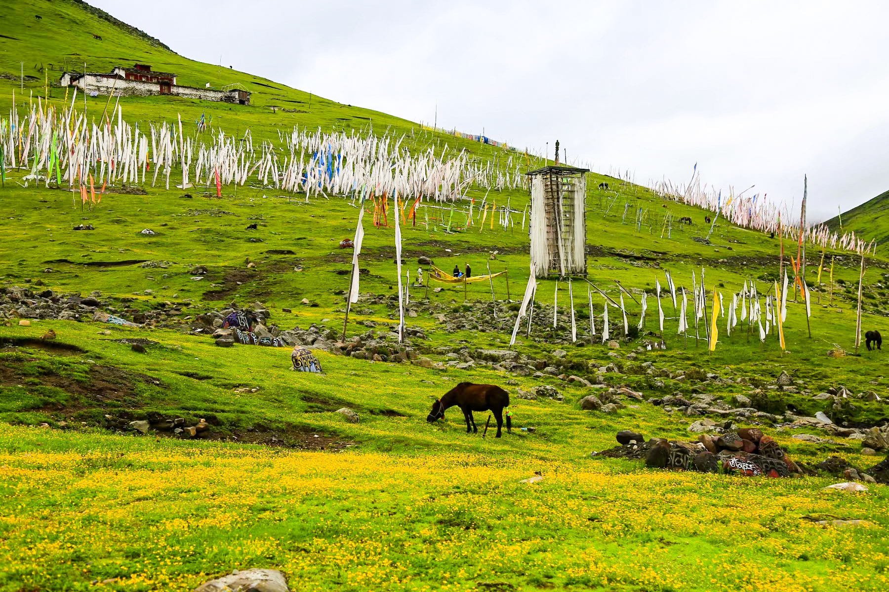 莫斯卡,藏语方言意为祥瑞平坦的地方。这里曾是格萨尔王战斗和生活过的地方,也是善良的人们与大自然和谐相处的净土。从山坡上望去,莫斯卡村错落的人家,悠闲的牛、马在长满野花的草原上静静地吃着野花绿草,随处可见的经幡飘扬着他们千百年来深信不疑又不可亵渎的信仰,独立世外远离纷争安静祥和地过着悠闲的日子,这也许是我们眼中所羡慕的世外桃源吧。