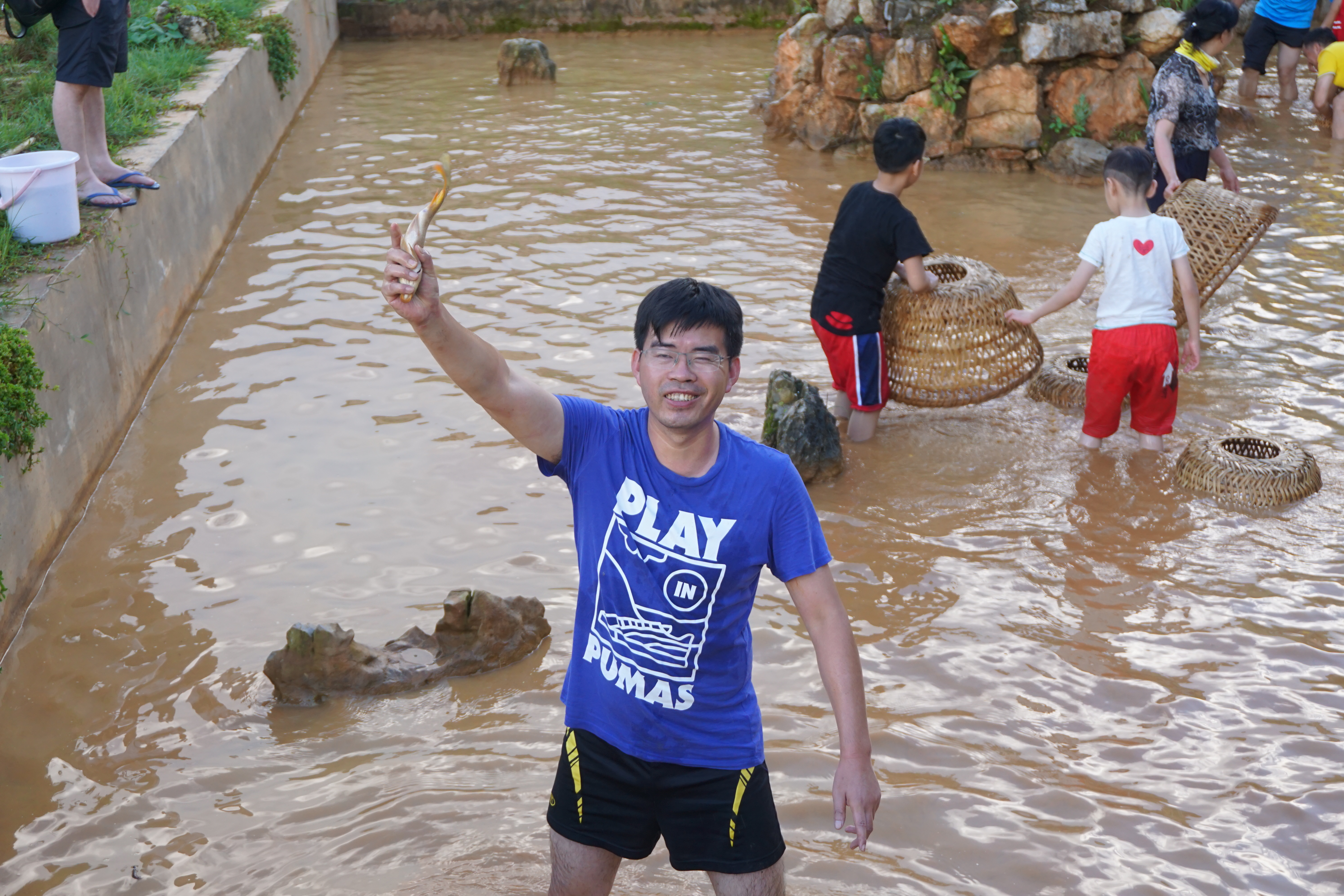 这位大侠是摸鱼高手。他一人摸了十几条鱼。