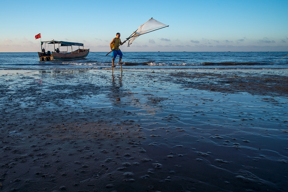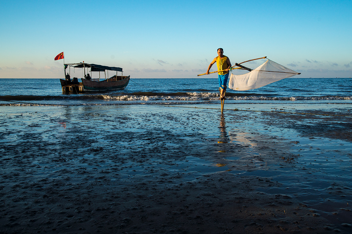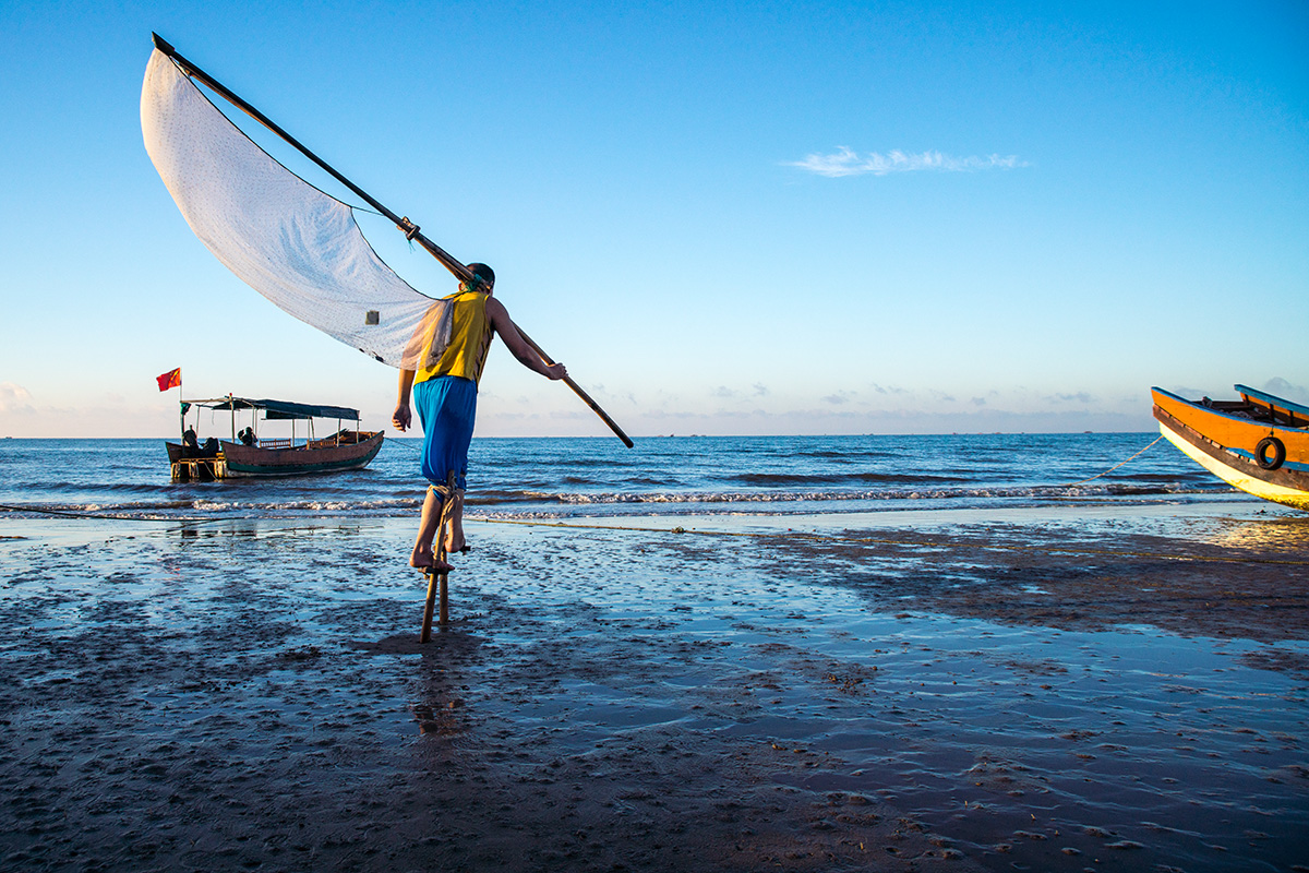 传说,过去京族人很穷,买不起渔船,便发明了在海里踩高跷,这样可以走入更深的海水捕鱼抓虾。