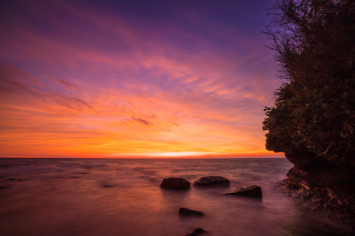 拍摄虾灯前,先以海岛日落热热身。