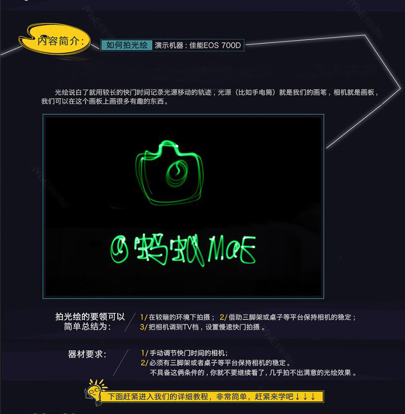 很多人很好奇光绘拍摄是怎么拍摄的,其实很简单和星空摄影的方法很像,依然需要稳定的三脚架,长时间曝光.....这里和大家分享几张图片帮助大家轻松掌握光绘摄影。