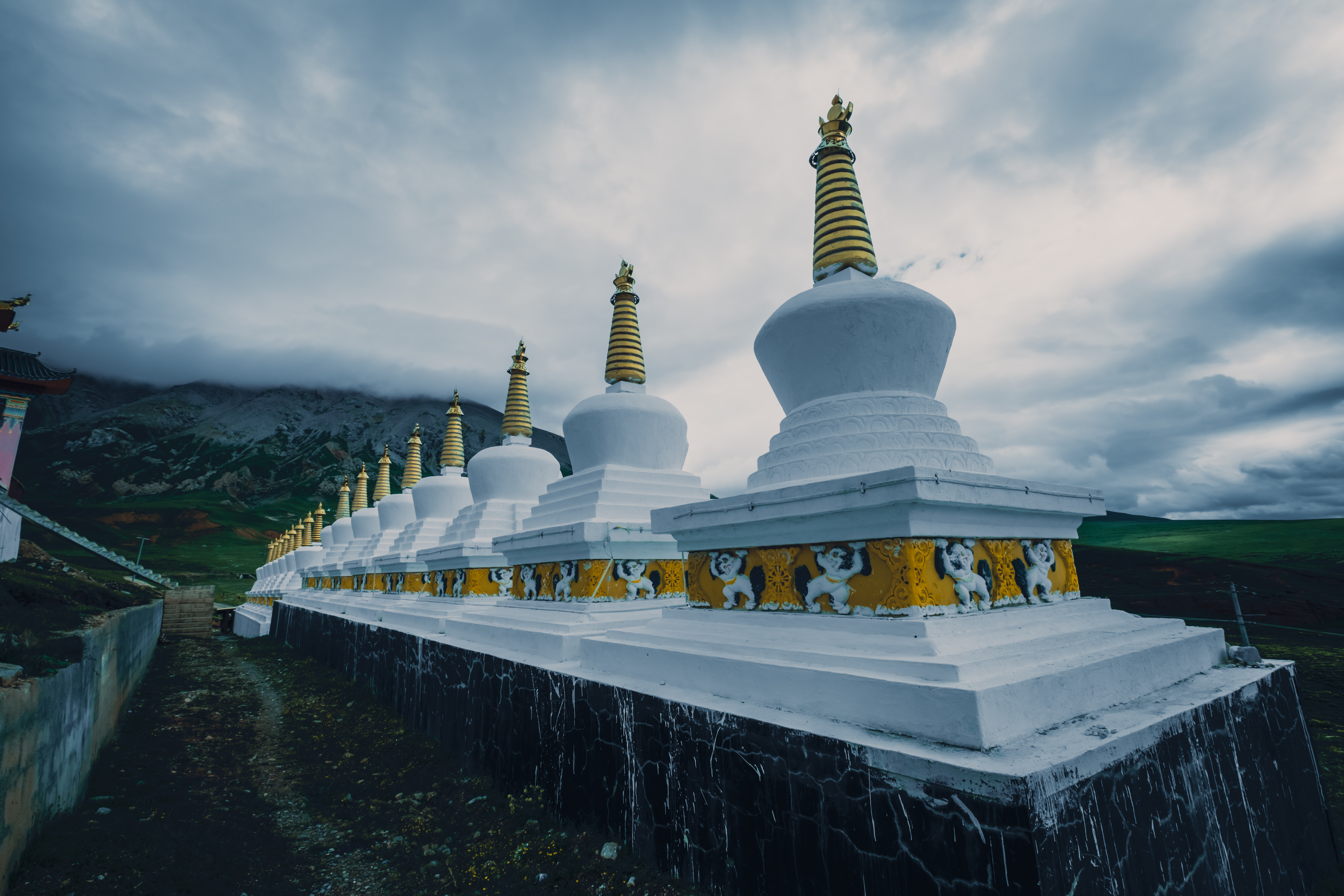 在藏区最常见的就是玛尼石堆,第一次见还是在西藏的纳木错湖,这次见到的规模着实把我震撼,数也数不完的玛尼石密密麻麻的堆放在那里,就像用玛尼石堆出了一座城市。藏民们嘴里念诵着经文,不时用额头轻磕石墙,人们的信仰如空气般透明,他们用歌声唱颂吉祥,用舞蹈祈求如意;宛若星光的酥油灯点燃了藏人的一腔赤诚,一生的瞩望;日月流转,江流蜿蜒,口诵六字真言的人们手执转经筒,转过玛尼堆、转过岁月的年轮,一代过去、一代又来。他们直接与蓝天对话,与日月交谈,送走了今生,留下了来世。