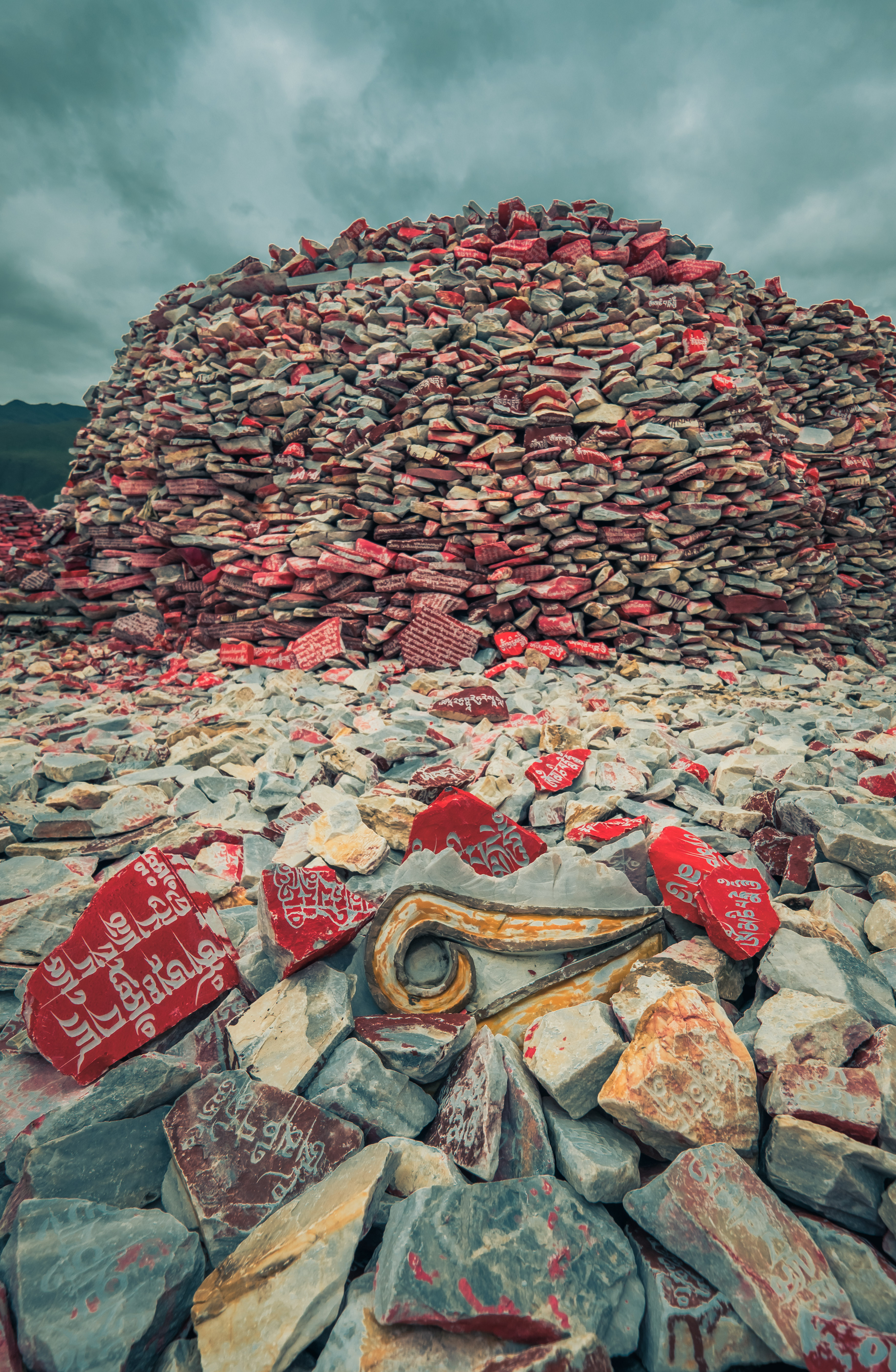 这里的每颗石子都凝结着信徒们发自内心的祈愿。玛尼石的产生,使这些自然的石头开始形象化。它是信徒们刻在石头上的追求、理想、感情和希望。