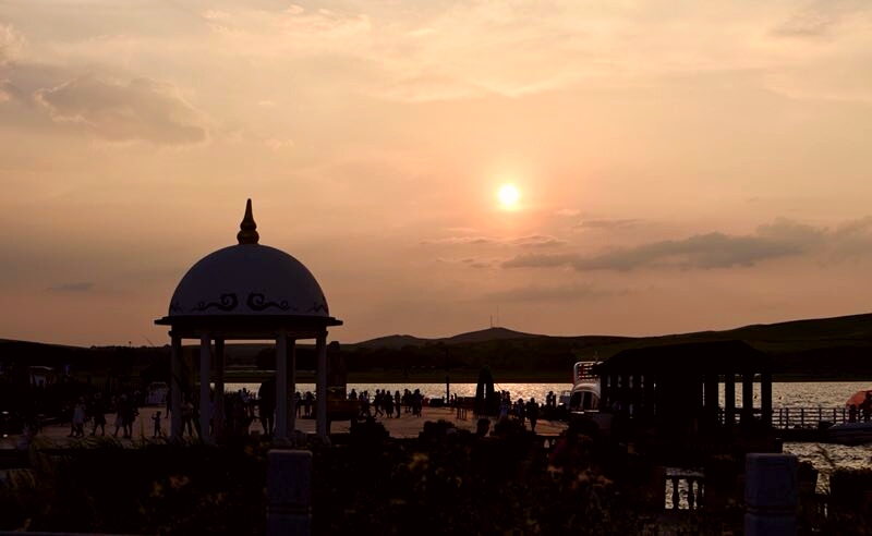 傍晚时分,沐浴着夕阳到达天鹅湖。