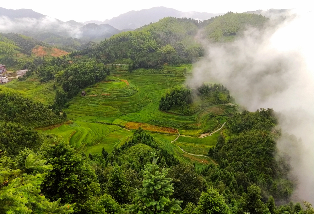 雨雾散去。。。呈现出:佳禾吐翠、青翠欲滴之夏季梯田美景!