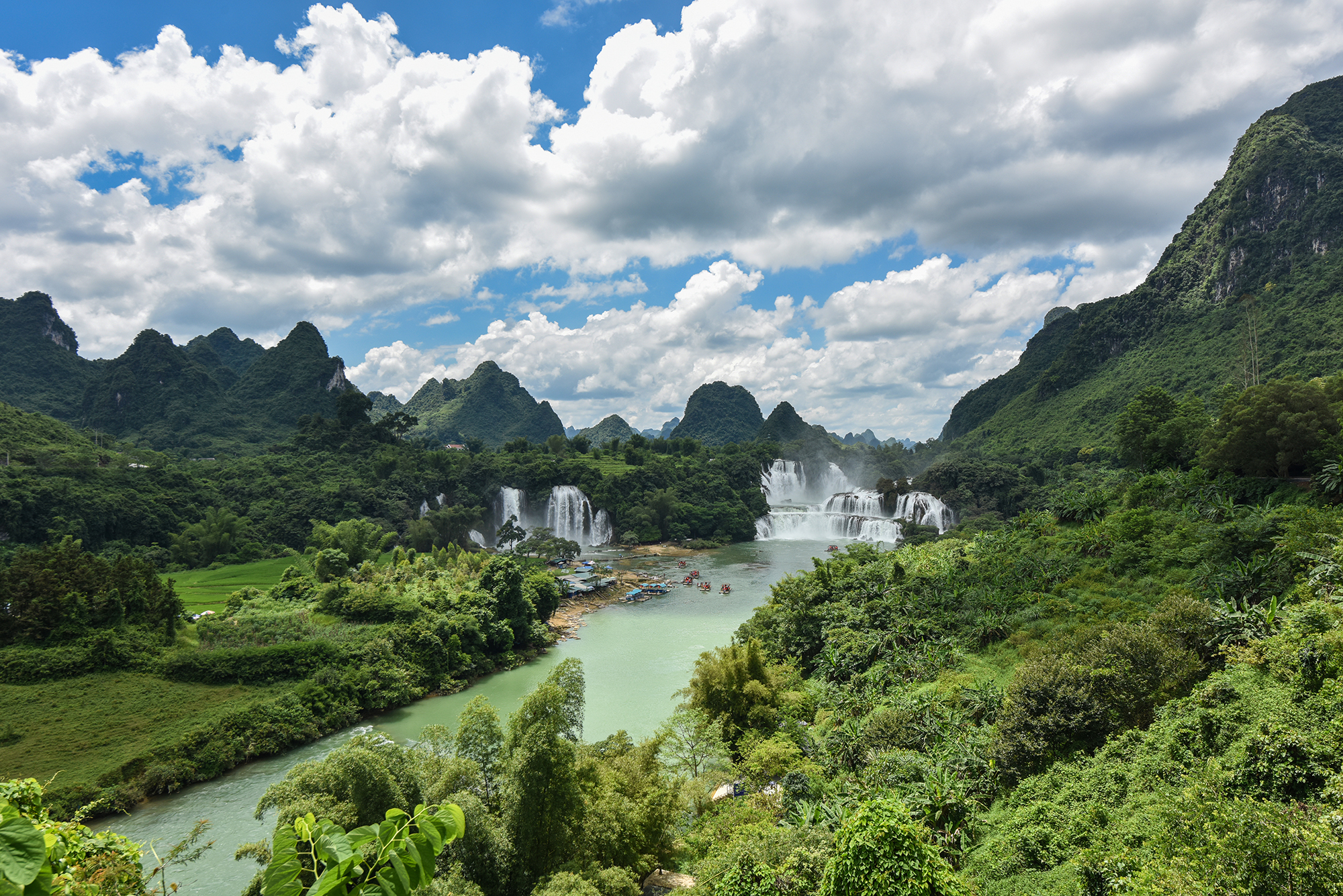 【德天瀑布】德天大瀑布,取得天独厚之意,一半属中国、一半属越南,一不小心就出国了。激流从70米高山崖飞泻而下,三层跌落如万马奔腾,轰鸣如水龙吟,是中国最美瀑布之一,同时也是《花千骨》长流山仙界的取景地。