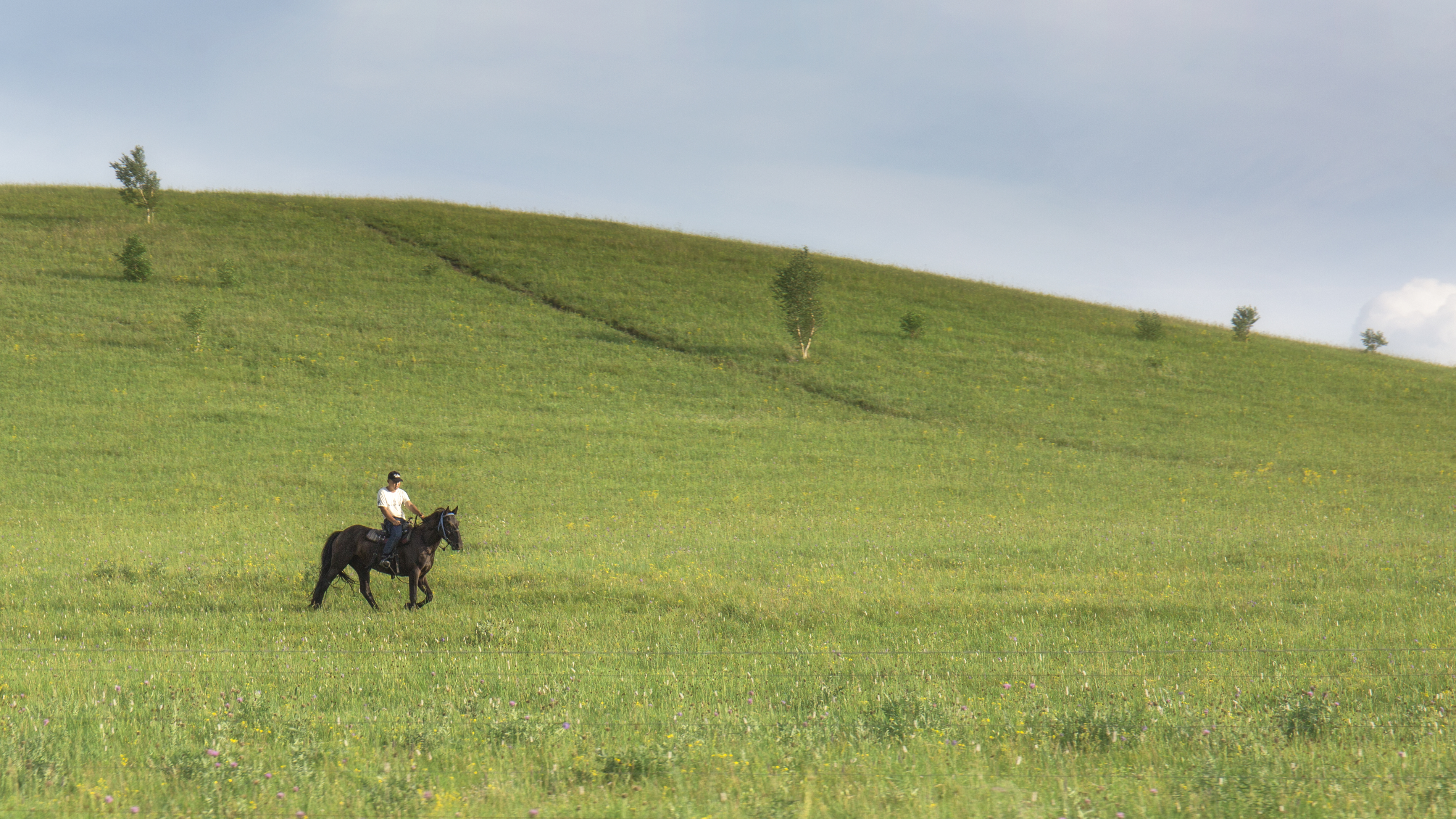 草原上不一定策马奔腾,慢下来在马背上欣赏这一片属于自己的美景