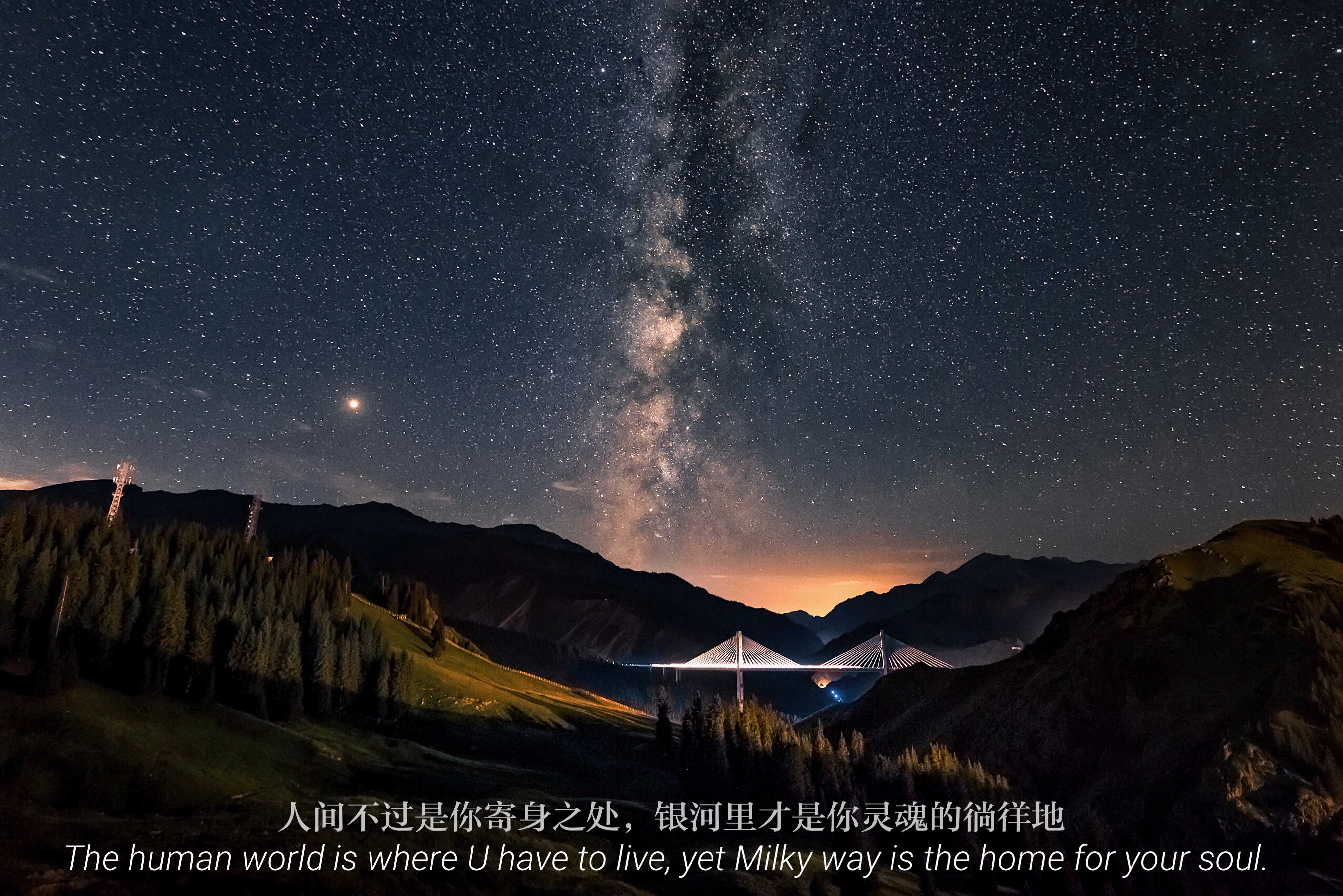 我以为,一个村子最好看的时候应当是早晚吧,早上村子刚刚醒来,最清秀;夜晚,村子要睡了,最有意境。如果时间允许,喜欢热闹的,可以去小店喝奶茶,格瓦斯或者一杯小酒,和四面八方来的伙伴们谈天说地;喜欢清静的,就在朦胧的月色中发呆,沉思也无妨。看完日落炊烟,看完马蹄扬尘,又在路上看了会儿乌鹊归巢,到小木屋时,天已经暗了。村子里没有那么多灯,天一暗下来,月光显得尤为明亮,月光轻轻地洒落在屋顶上,那种感觉好像妈妈抚摸着宝宝的头,特别温柔。小伙伴们去喝茶了,我刚好独处,我可能是个喜欢清静的人。坐在吱呀摇晃的秋千上,任秋千晃动,此时再看月亮,月亮特别大,好像也跟着我一起荡秋千。沐浴在月光下,伸伸懒腰,再一根根舒展手指和脚趾,就像八爪鱼一样嚣张,也像小草发芽,花儿开放的一瞬间,很奇妙。闭上眼,静静地,感官会变得很敏锐清晰,听着自己的心跳,感受血液在血管里若有若无地流动,数着一桩桩不欲人知的心事,任长夜漫漫流过•••