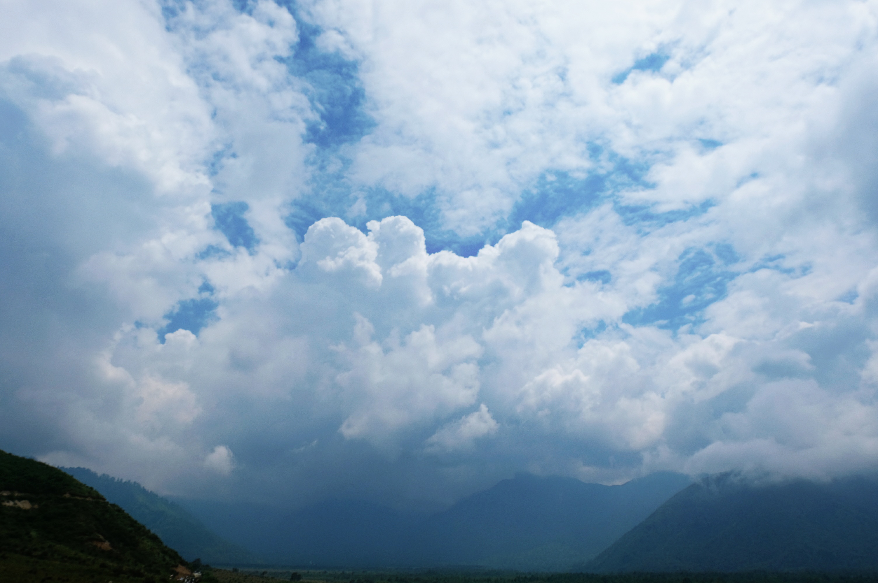 天也有不测风云,游览完孟获城之后,山间风雨变幻莫测,堆积了一天的阴云呈四面包围的姿势向孟获城中心靠拢,酝酿了一天的雨终于下了下来。