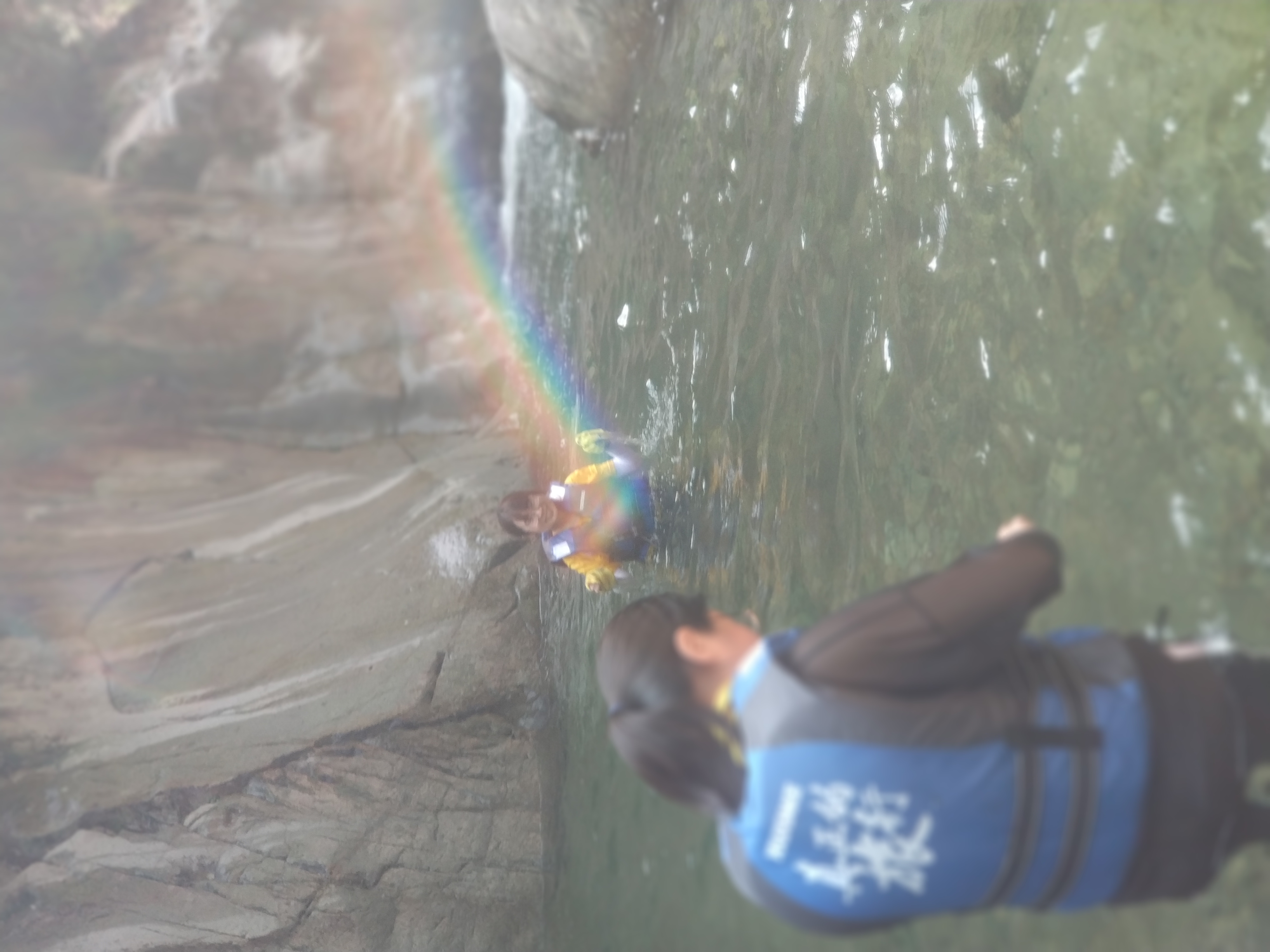 终于到了第一个水潭,可乐小姐姐迫不及待就噗通进去了,溅起一湾水花,在镜头上泛起了彩虹。美腻非常