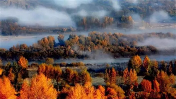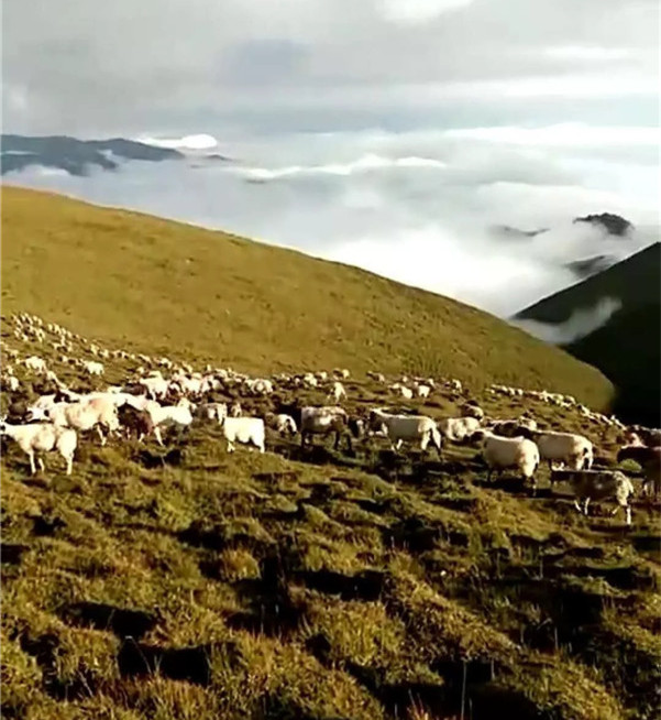 一阵秋风吹过,吹黄了无垠的山坡,白色的羊群点缀其间,远处秋雨初霁,薄雾锁黛山。如果你能身临其境,你就能感受到这是一幅怎样的画面,那就是一幅浑然天成的水墨丹青画。