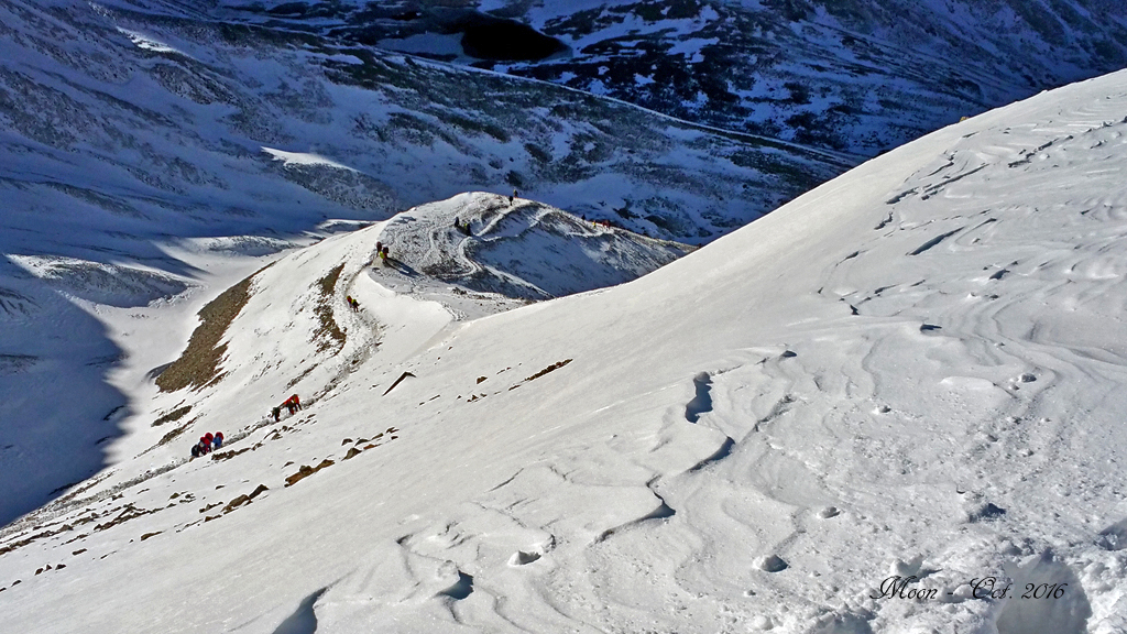 第二天迷迷糊糊醒来爬出雪堆,已雪过天晴,队友们无不欢欣鼓舞