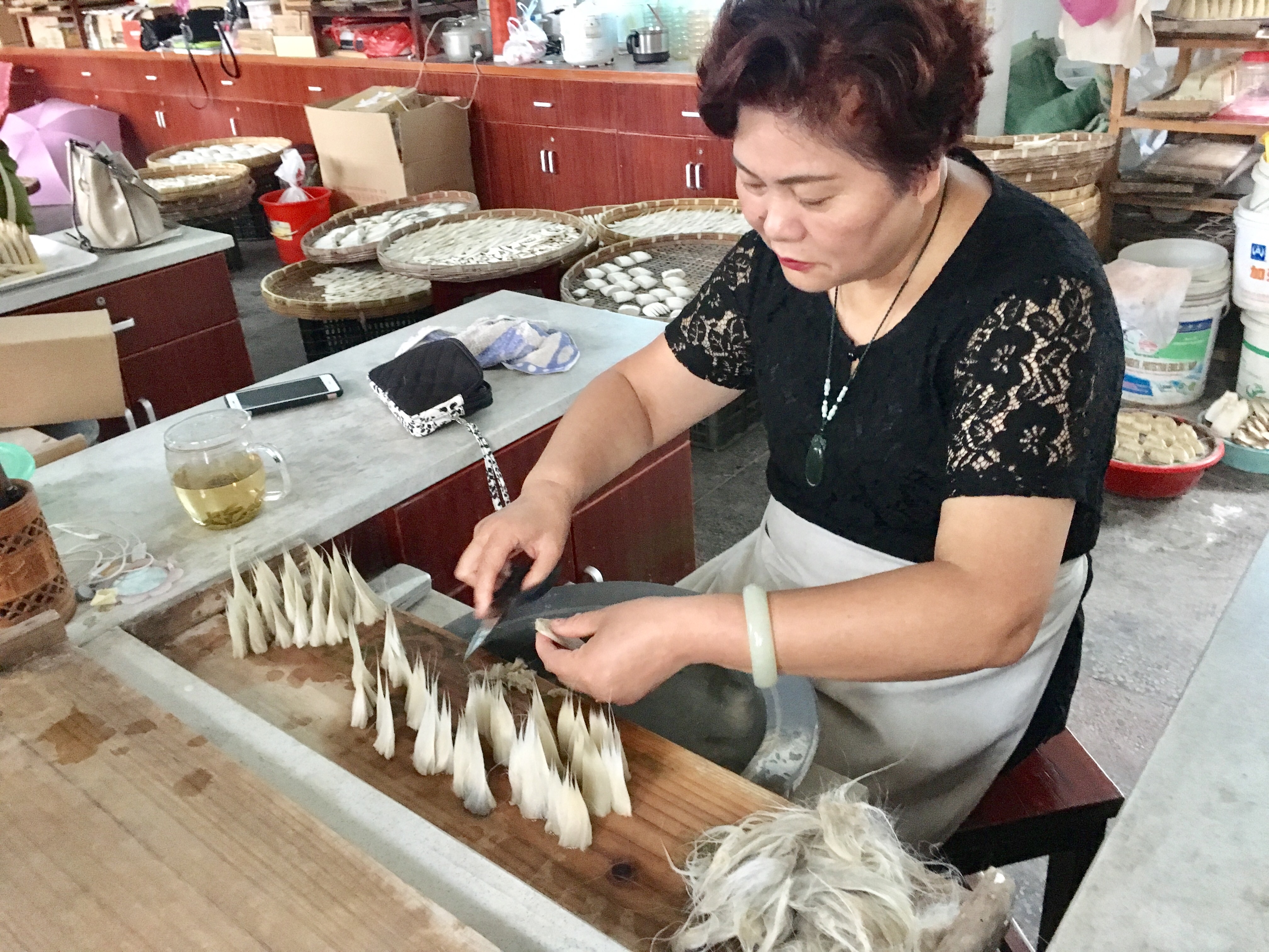 在这儿,我们可以看到完整的湖笔生产线。