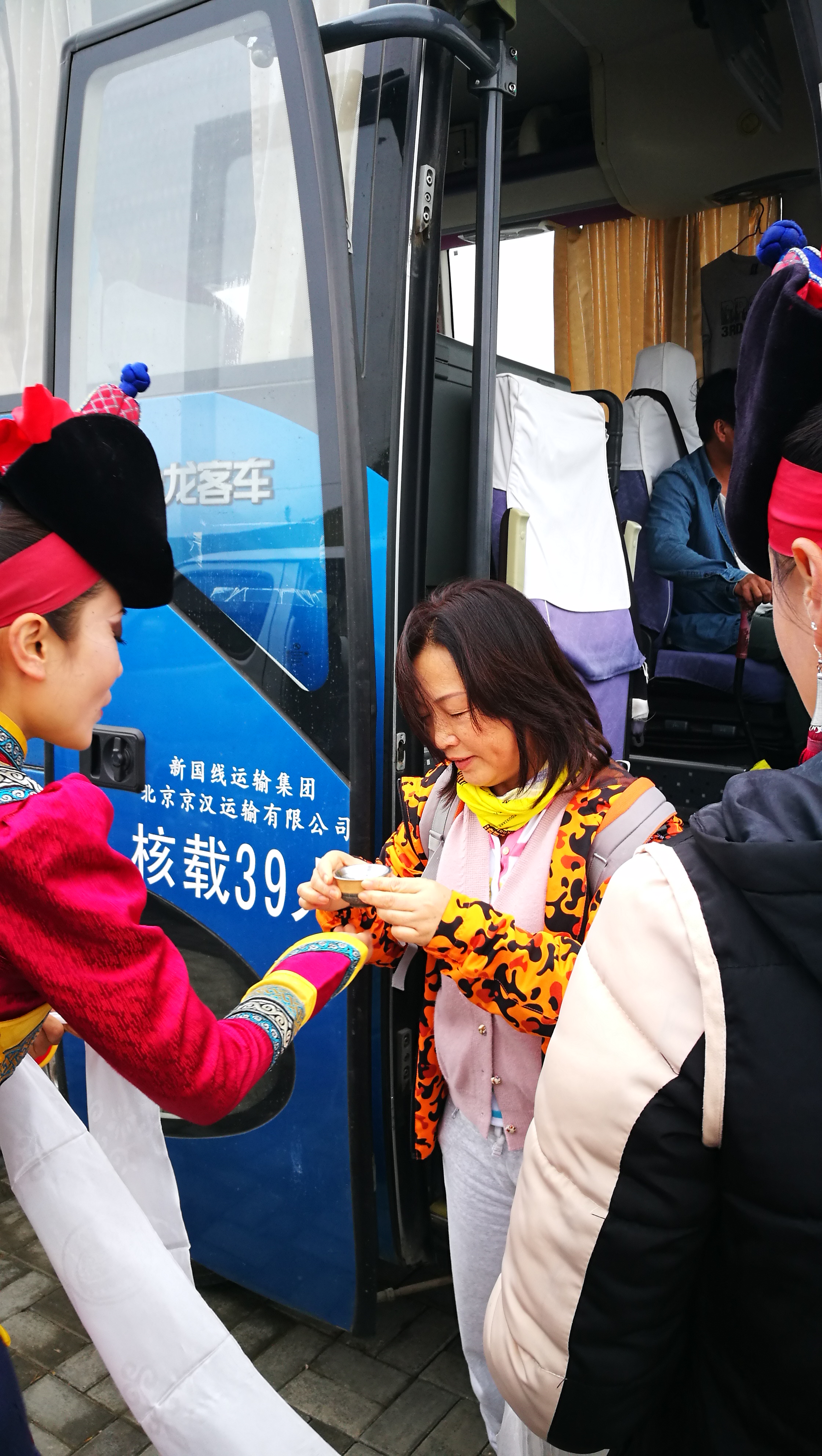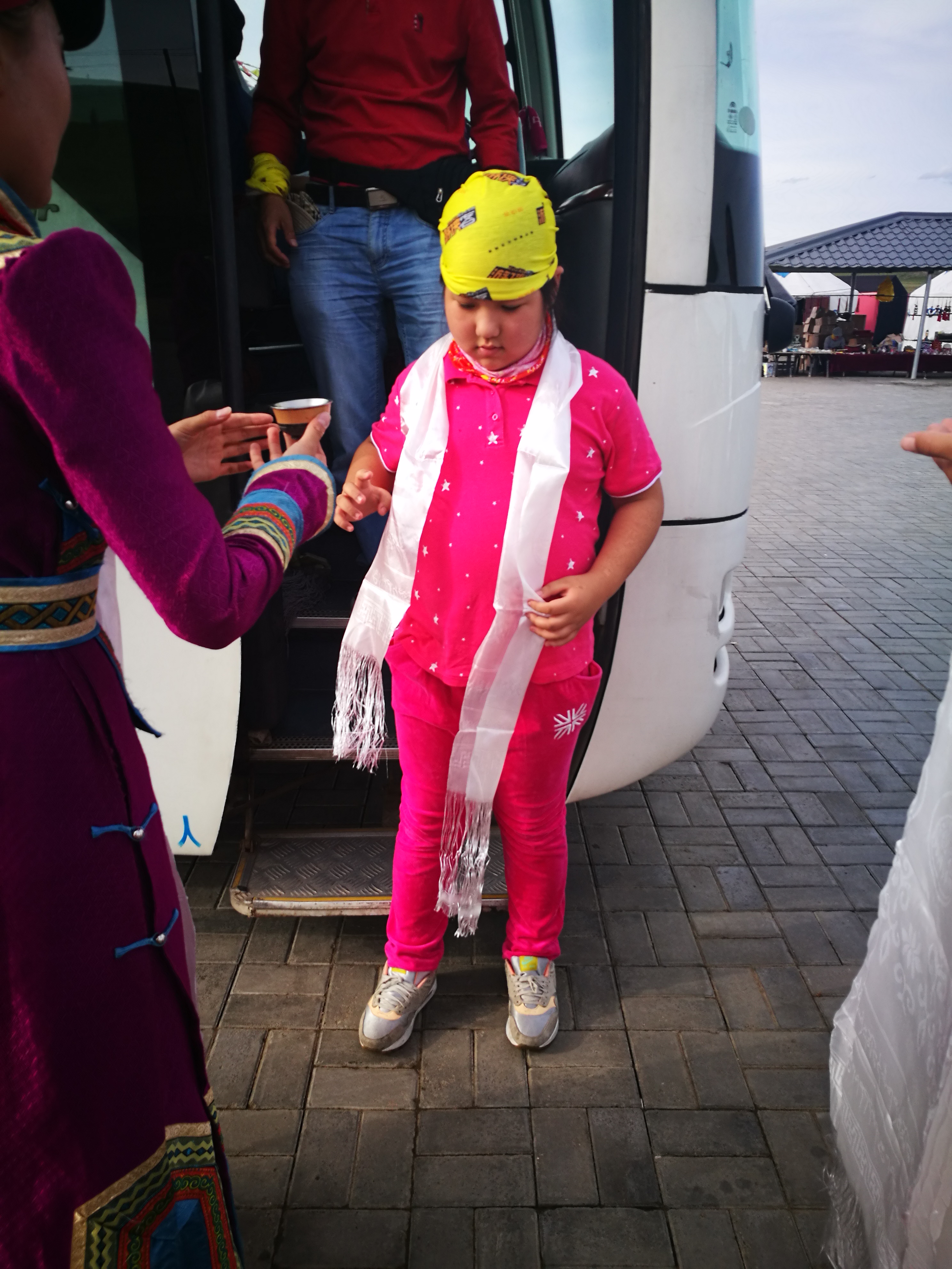 怀着虔诚的心手捧马奶酒,脖套洁白的哈达。