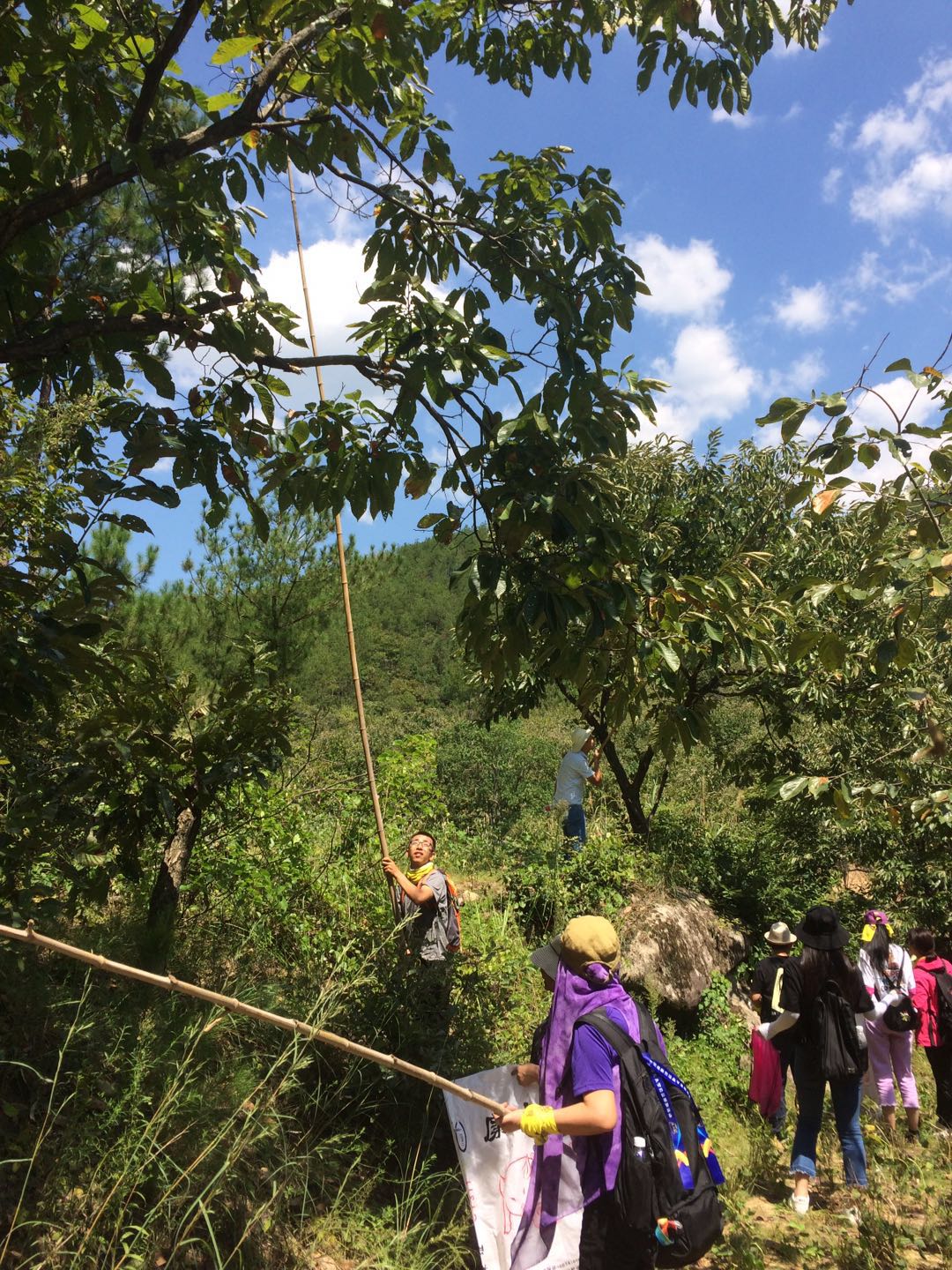 带上打板栗的竹竿、帽子、手套等工具,大家雄赳赳气昂昂地朝着板栗树走去。