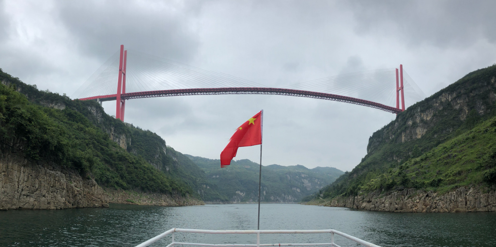 船拐进了鸭池河,鸭池河特大桥就在山顶两端飞架而过,宏伟壮观。