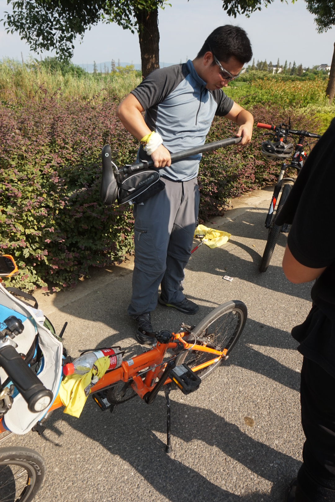 其实本来我们的期望是大家就骑完2/3,然后最后重复的那段路程我们坐车回去,因为这次采取的是4+2模式,就是2只轮子的我们在前面骑,后面有后援大巴跟着,体力不支的话,可以在好几个停靠点上车。