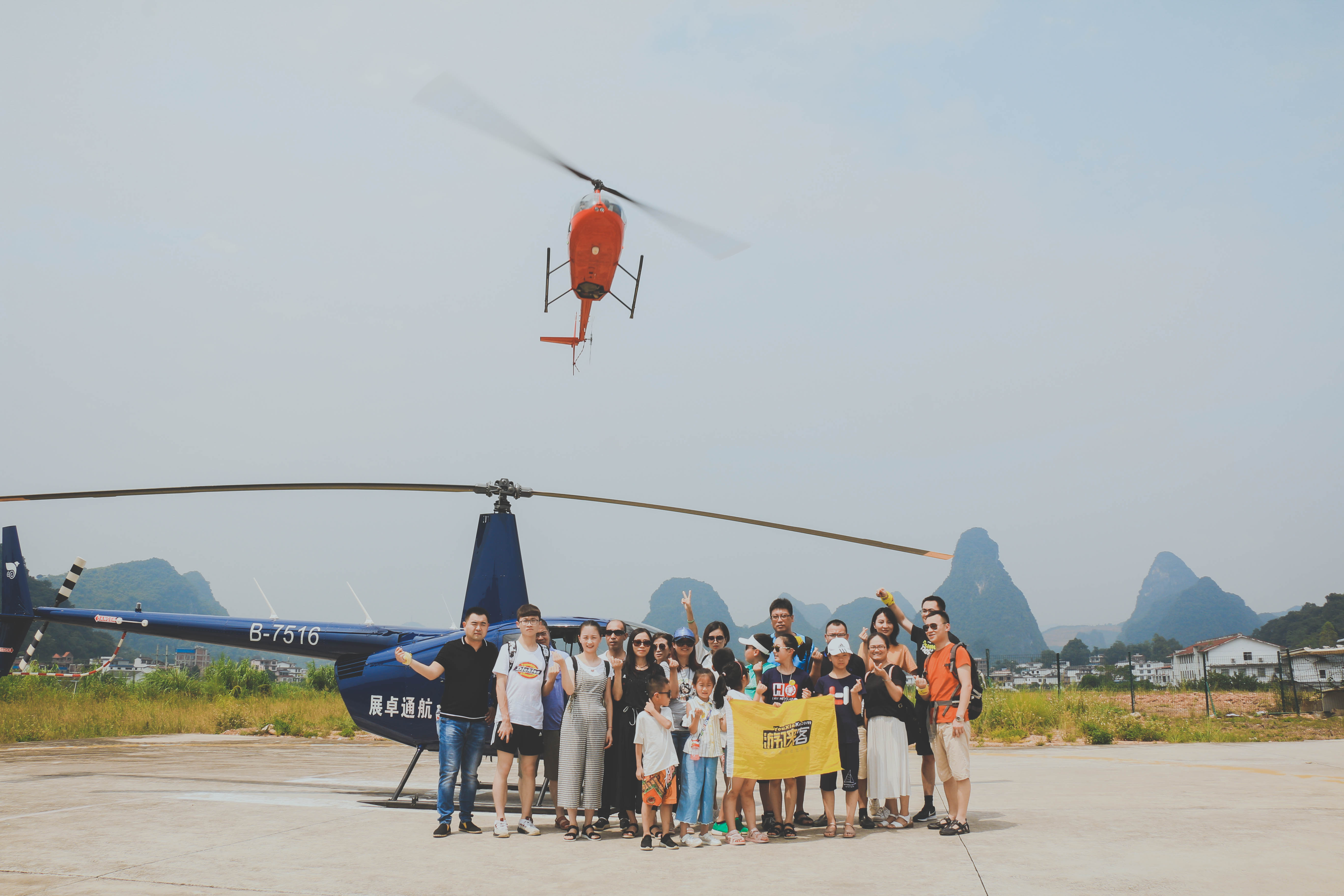 今天是轻松好玩的一天。上午出发航空基地,到达之后经过称重、安检、安全知识学习,我们坐上了直升机。飞机起飞围绕群山飞翔而上,我们看到了陆地难以看到的壮观奇景。飞机航线会经过十里画廊、遇龙河,沿途机长会通过耳麦告诉我们相关景点的位置方便大家浏览。