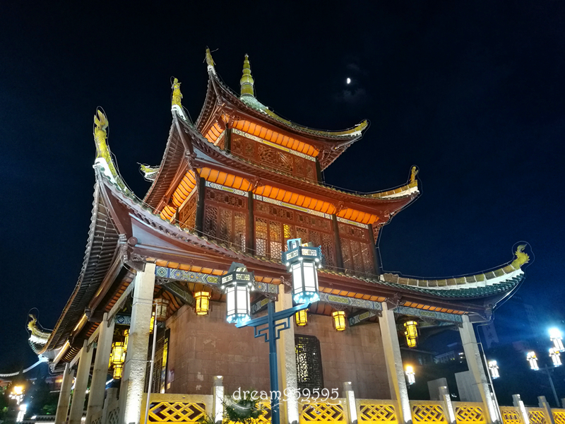 甲秀楼的夜景确实非常漂亮,美到后悔白天怎么没来瞧一眼,不知道围墙里面是什么样子。