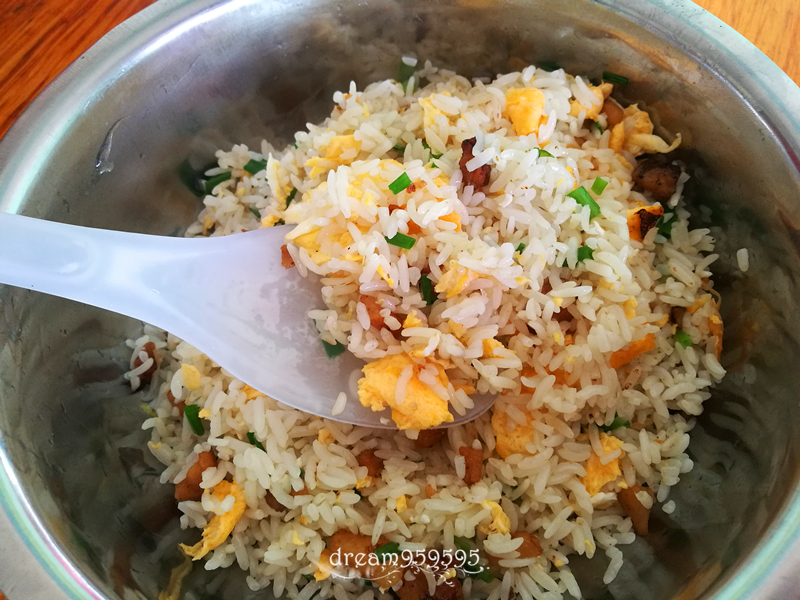 每一碗都是现炒的,放点猪油渣,当地人还会放点玉米粉和辣酱,味道还不错,也是因为饿了。