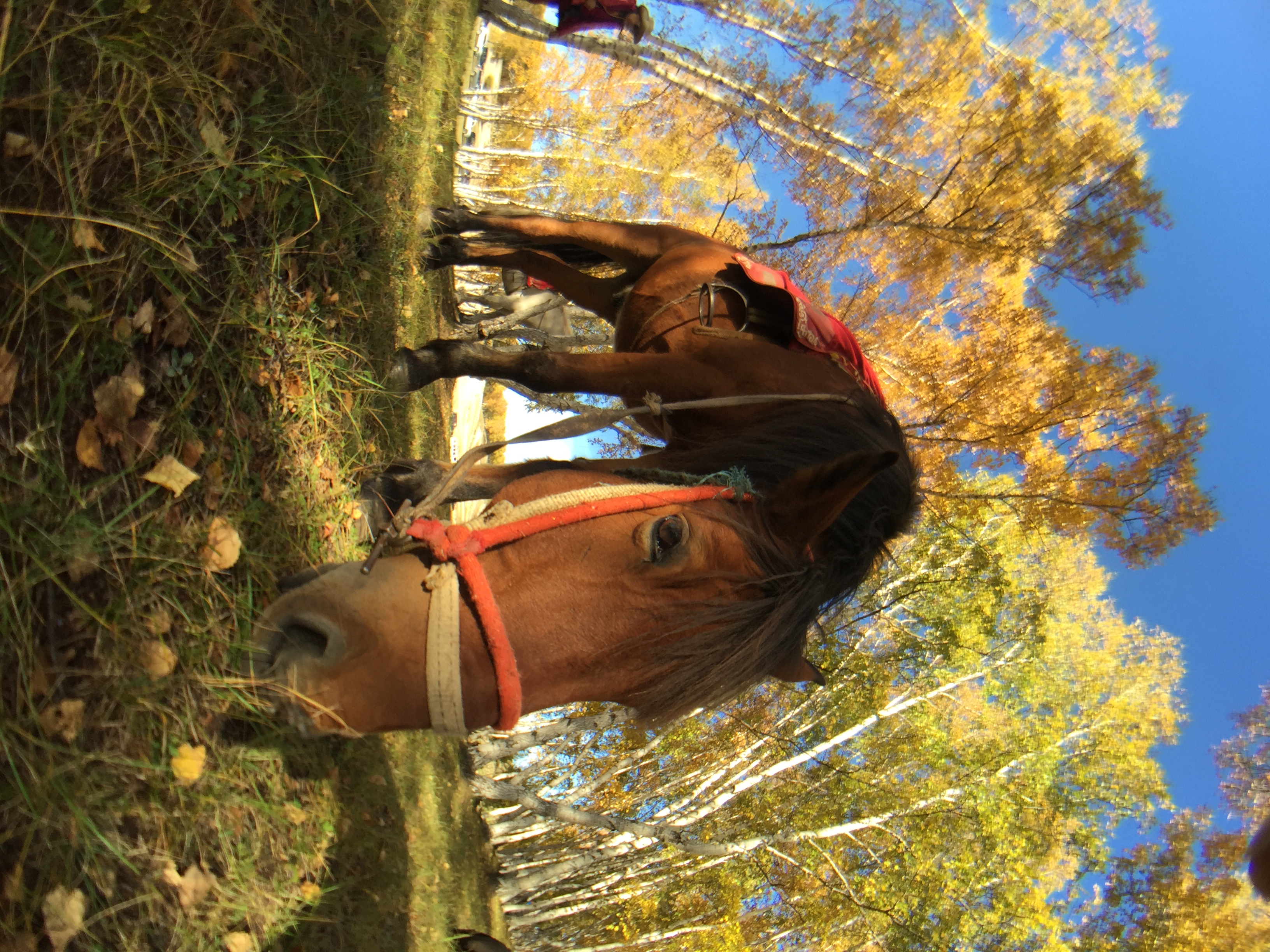 乌兰布统的景色是静态的,走进河谷,水流舒缓无声,这里无风,温度高于别处,河边的几棵白桦树亭亭廋廋,枯枝斜刺刺的伸向天空,树叶散散的长着,大部分已经落地。