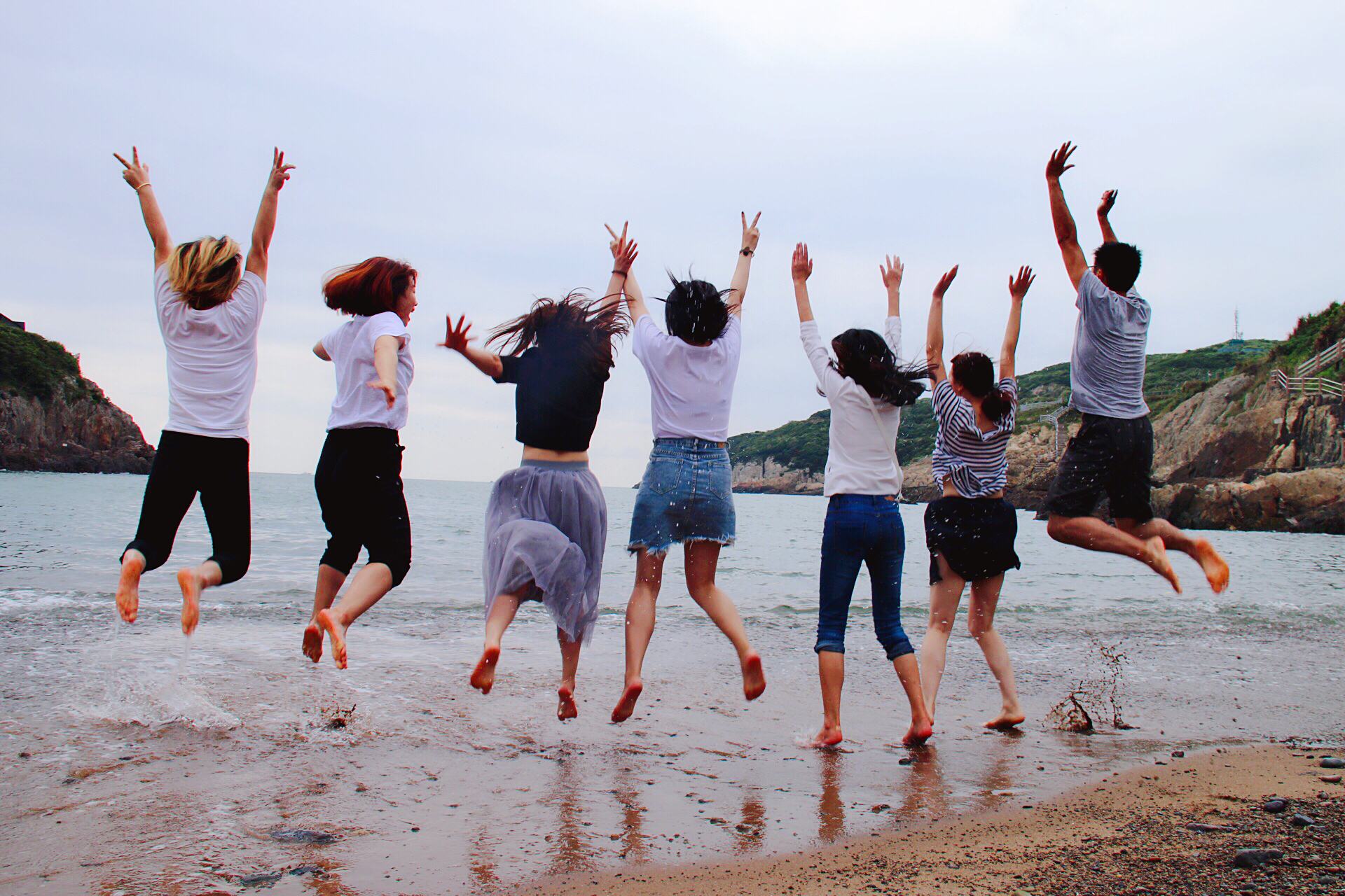 赤脚踩在沙滩上~任由海水拍打着脚丫
