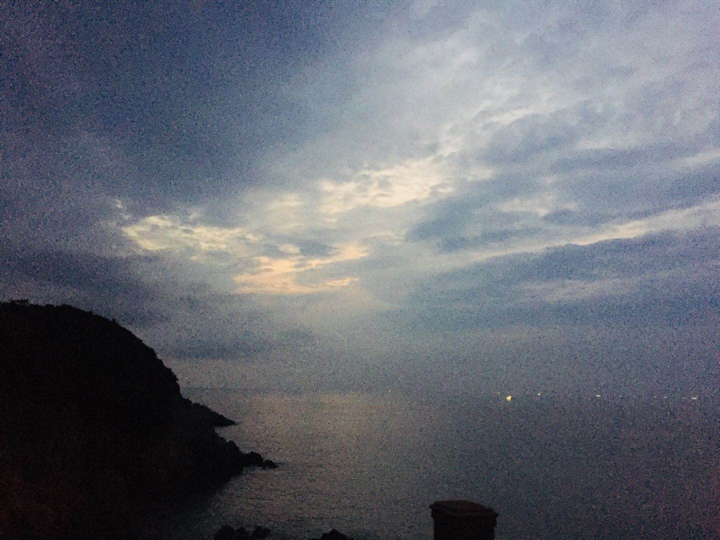 风一阵阵地吹着,也渐渐地凉了。初来岛上时的那种躁热不安的心情,也逐渐地被这风儿冷却了。心想,如果我们能赶在一个晴朗的日子来到这海岛,白天沐浴在柔柔的海风里,晚上能欣赏到这海岛的月亮和星星,还有夜幕笼罩着的迷人的灯光,在加上远处的涛声,那将是怎样一个醉人的海岛之夜~