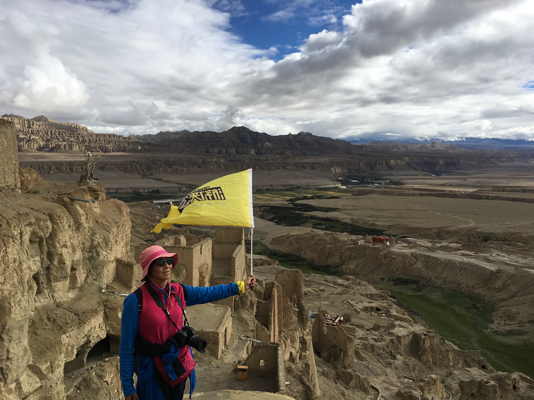 在高原旅行,我特别不忍心招呼大家拍集体照,也不忍心占用队员们宝贵的自拍时间,所以常常只能自己扛旗拍广告照了。