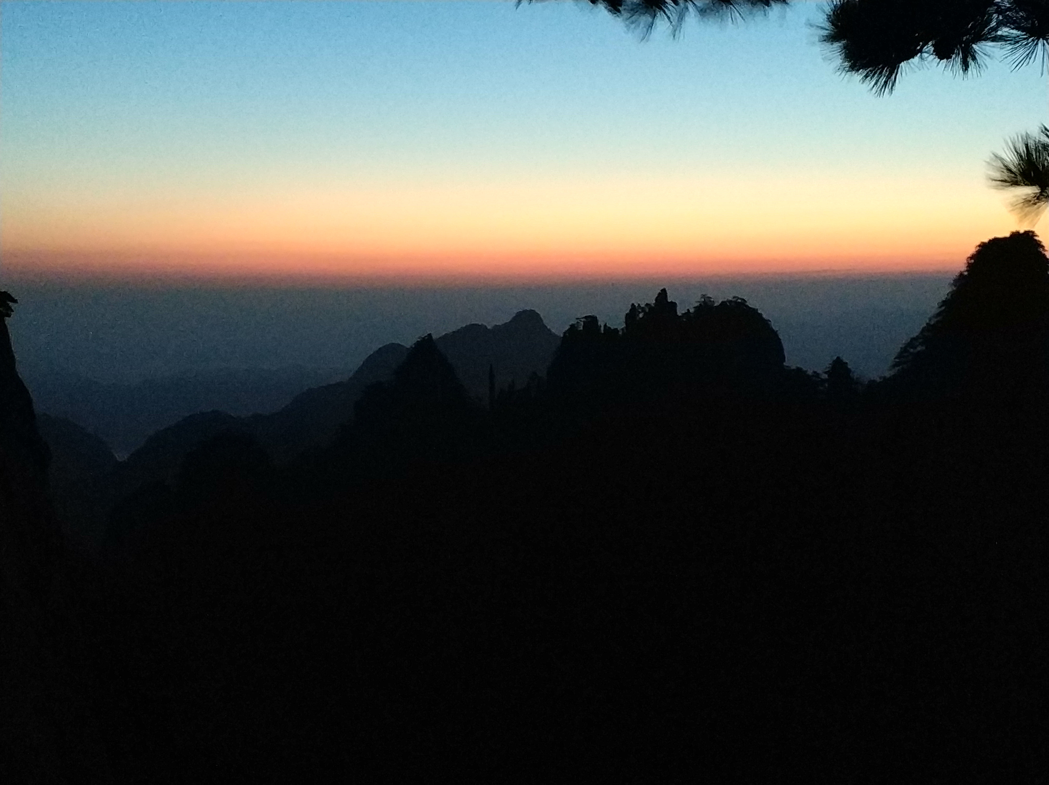 黄山日出时间:5-7点间,夏季5-6点间,冬季6-7点间,具体可以查看宾馆门口提示和询问宾馆工作人员。