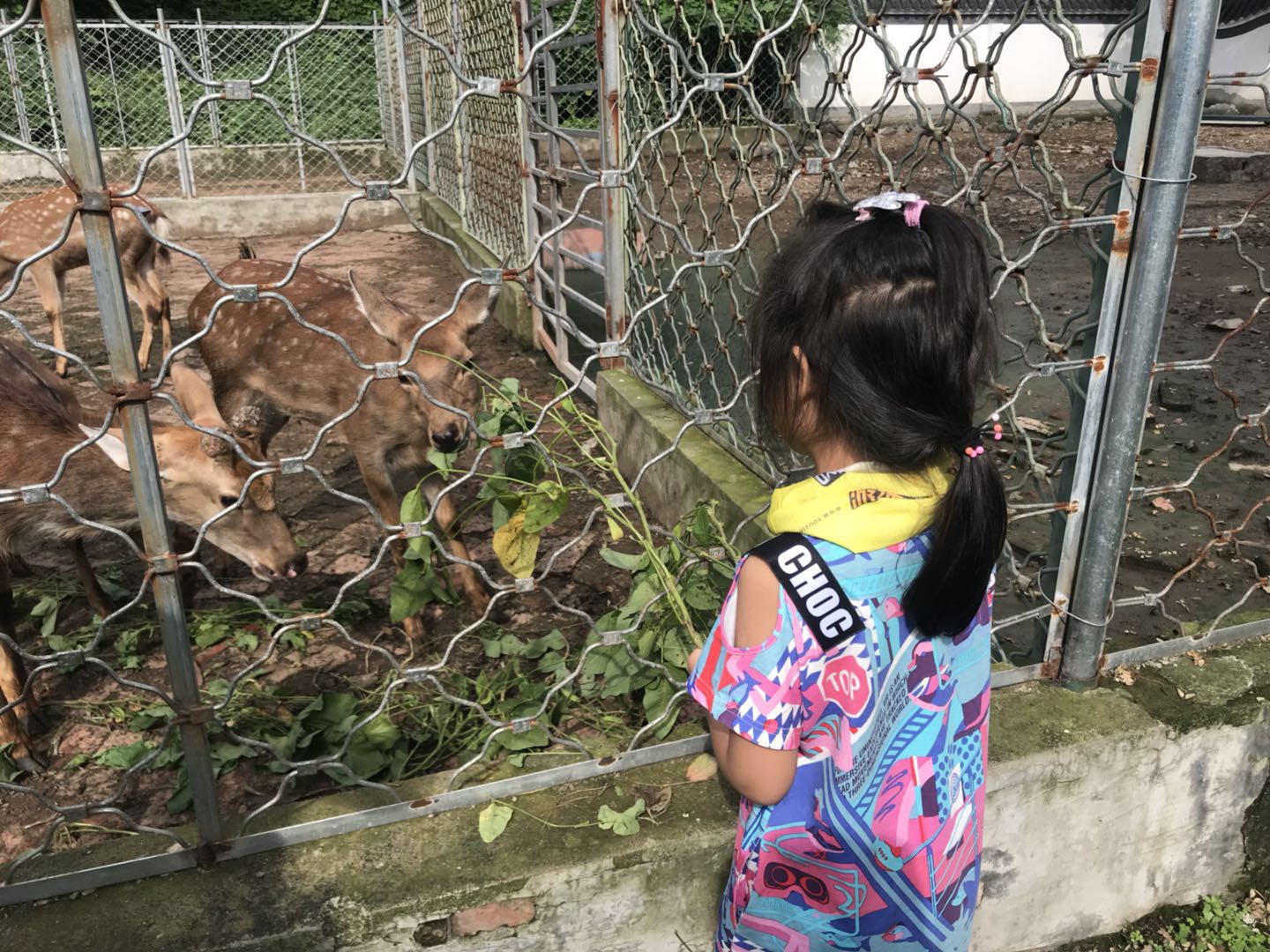 出了熊猫馆,正好旁边有片梅花鹿饲养区,宝贝们给梅花鹿喂食,玩的不亦乐乎~