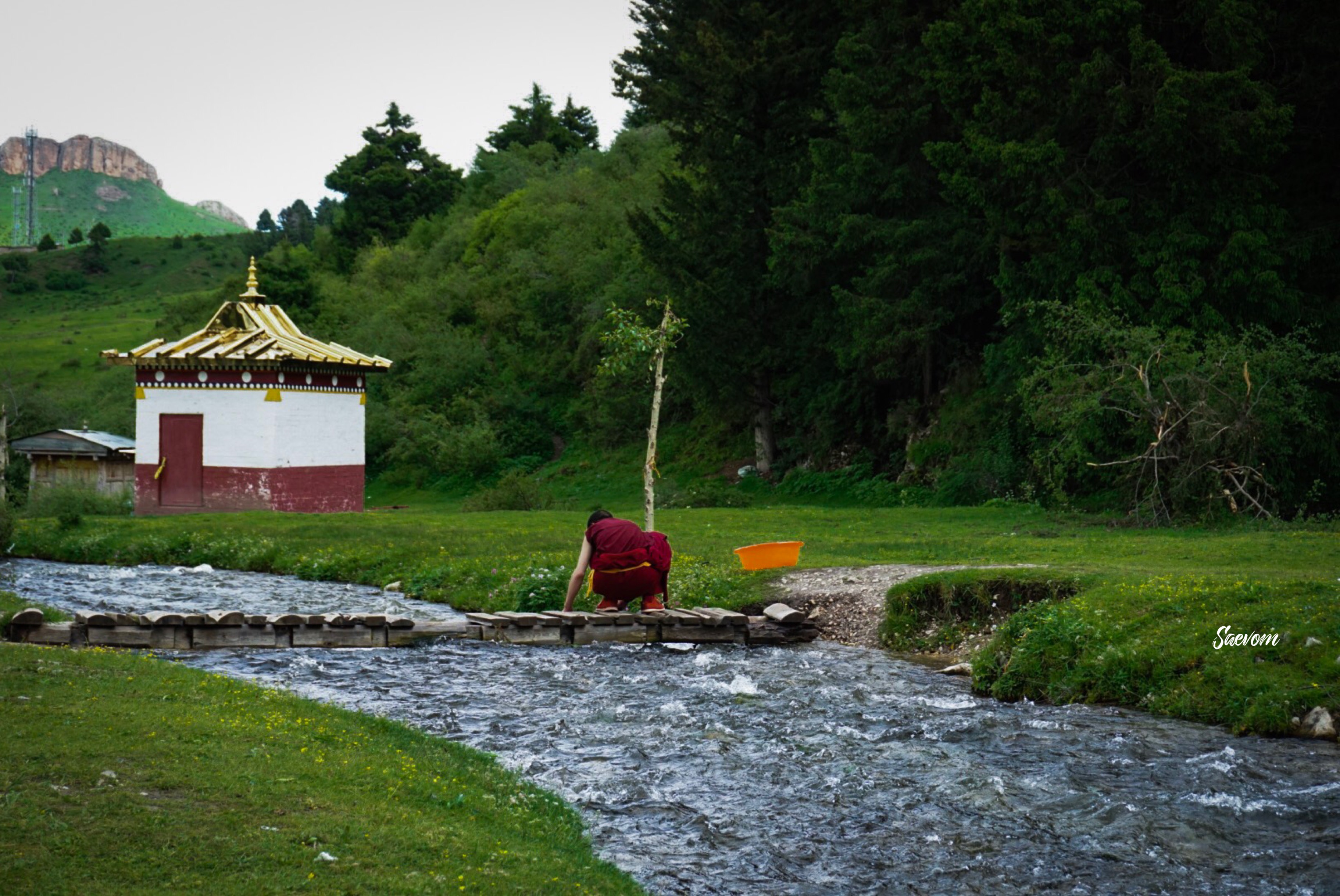 初到郎木寺前,有段小插曲,具体也就不讲了,但是那时候起我的心情就像郎木寺的天气一样一直蛮黑暗低沉的,就提不起兴趣了,我在郎木寺那几天一直在下雨,第一天早上很早就出去,寺下面的路在修建,全都是泥,踩得我心也是拔凉拔凉的,雨一直在下,我想着要不去看看天葬吧,向着喇嘛(阿卡)给我说的小山坡爬去,在半山腰还看到两只很可爱的小鹿,走到岔路口瞬间就迷茫了,对面走来了一个藏族的奶奶,讲了很久我才大概懂得他问我是不是去看天葬,我说嗯,她就带着我直接翻过护栏斜着爬上去了,路很湿很滑,我真的也是很怕她摔倒了,一直在后面扶着她,那个拉卜楞寺小弱鸡的我,瞬间开了挂一样,三两下就和奶奶爬上去了,奶奶随身带着小板凳,她就坐在那里休息一会,我就蹲在她旁边,她跟我讲了几句话我也听不太懂,她就直接把她的包放在地上让我坐上去,我说不用不用,把她的包拿起来了,真的很暖心的一个奶奶,后面她带我到一条路上,其实我看到秃鹫,我知道我已经到了,和奶奶说再见后便过去了。