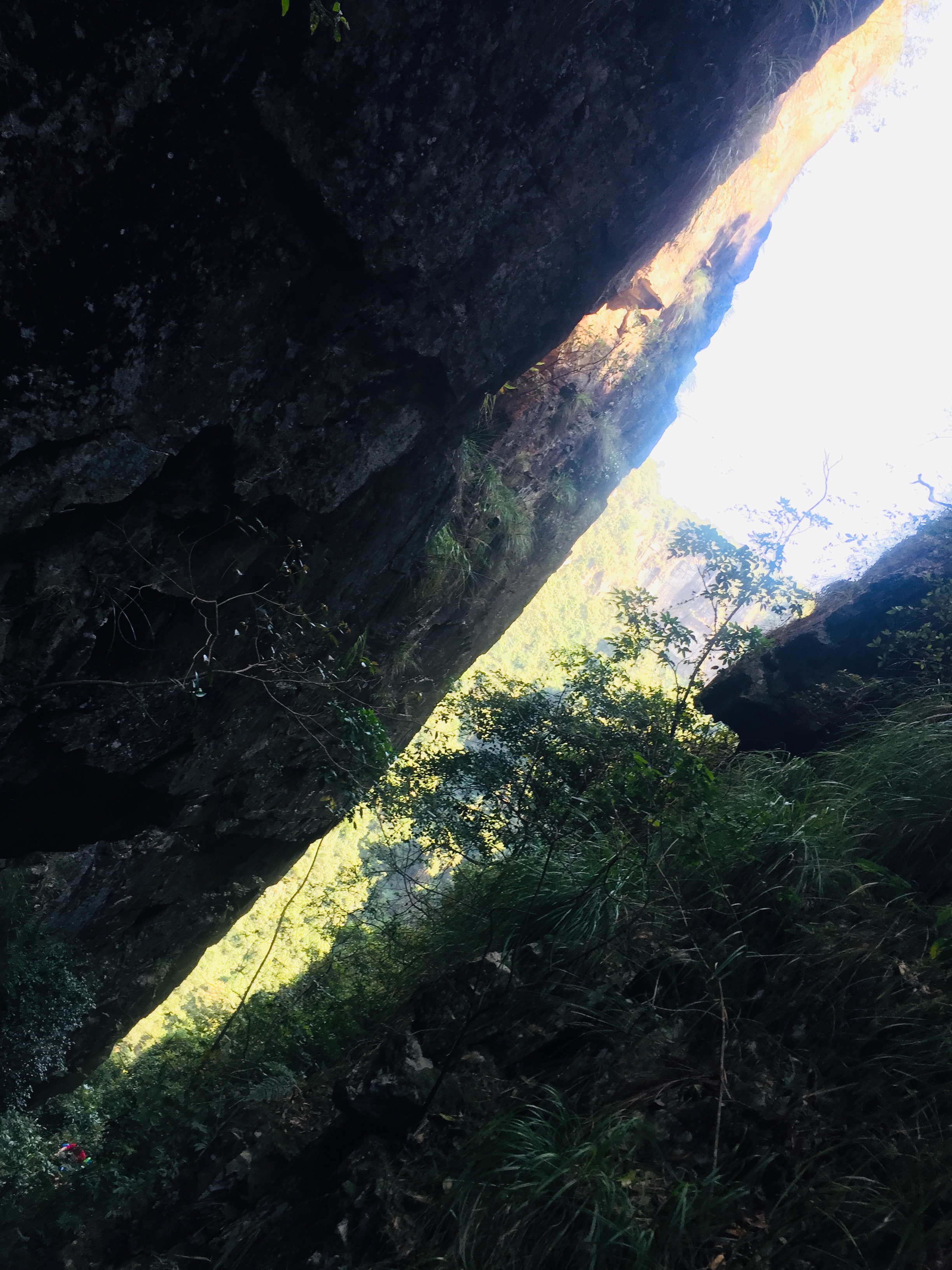 我们继续前行,来到了通天梯!划重点!通天梯!!直白点就是一个楼梯绵延不断从山谷通向山顶,从山底看,放佛是一条天路,没有尽头,让人望而却步,在这里我们会分开两条路线,一条通天梯,一条是看风景的……我们的小伙伴们居然统一选择了通天梯,这个真的让人爬到怀疑人生,如果你登顶了你会怀疑腿还是不是自己的,或者怀疑自己原来还可以如此牛逼……嗯怀着必胜的决心开始爬了……爬到三分之一,大家就开始怕了……但是大家真的超级棒!!!互相打气,互相鼓舞,在不停的走走停停中,二分之一,三分之二,五分之四!登顶!!!山顶的风景就是最好的奖励!大家在踏完最后一节楼梯后的喜悦和气喘吁吁真的是要被铭记在心的,那一刻是胜利,是自己的胜利,我们看到太多人退缩太多人放弃!恭喜你们,游侠客的战士们!迎接我们的还有惊险的空中表演,刺激人心~真是除了大自然的风景在,又增加了一份特别的眼福!你以为精彩到这里就结束了吗??不,最美好的往往在最后呈现,最后的瀑布才是最抨击人心的,它湍急,落差大,岔口多,但却最终汇成一股清流流向山谷~它的美会让你一见钟情却难以用文字表达,真正美好的事情都是要亲身感受才好。