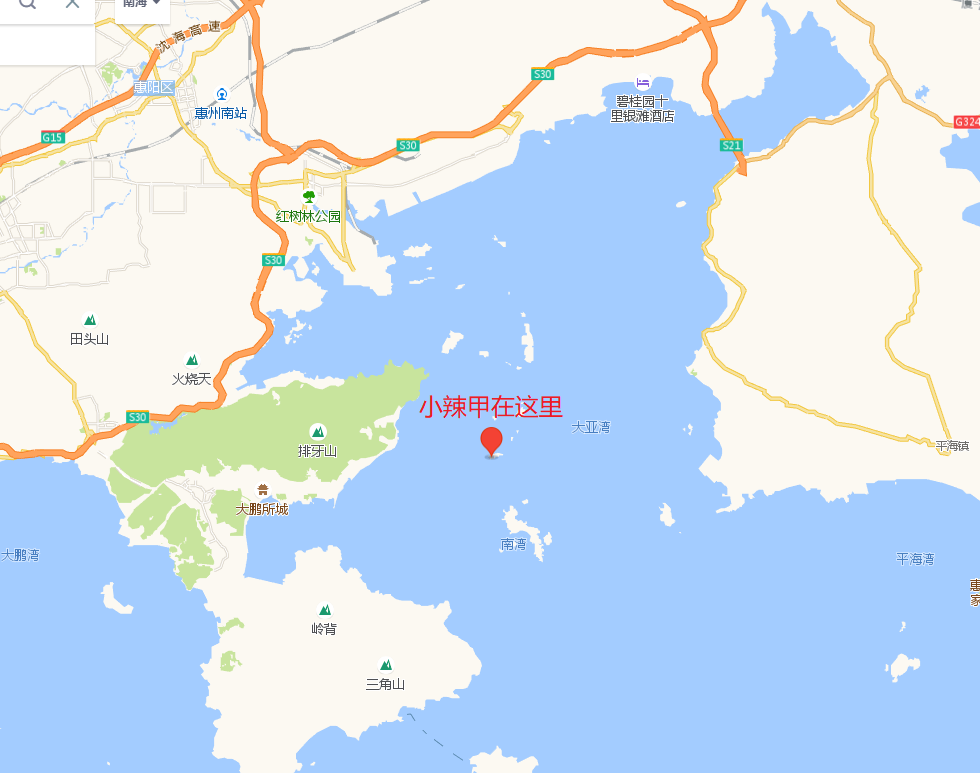 一个岛: 小辣甲岛---位于大亚湾,是大亚湾海上百岛之一