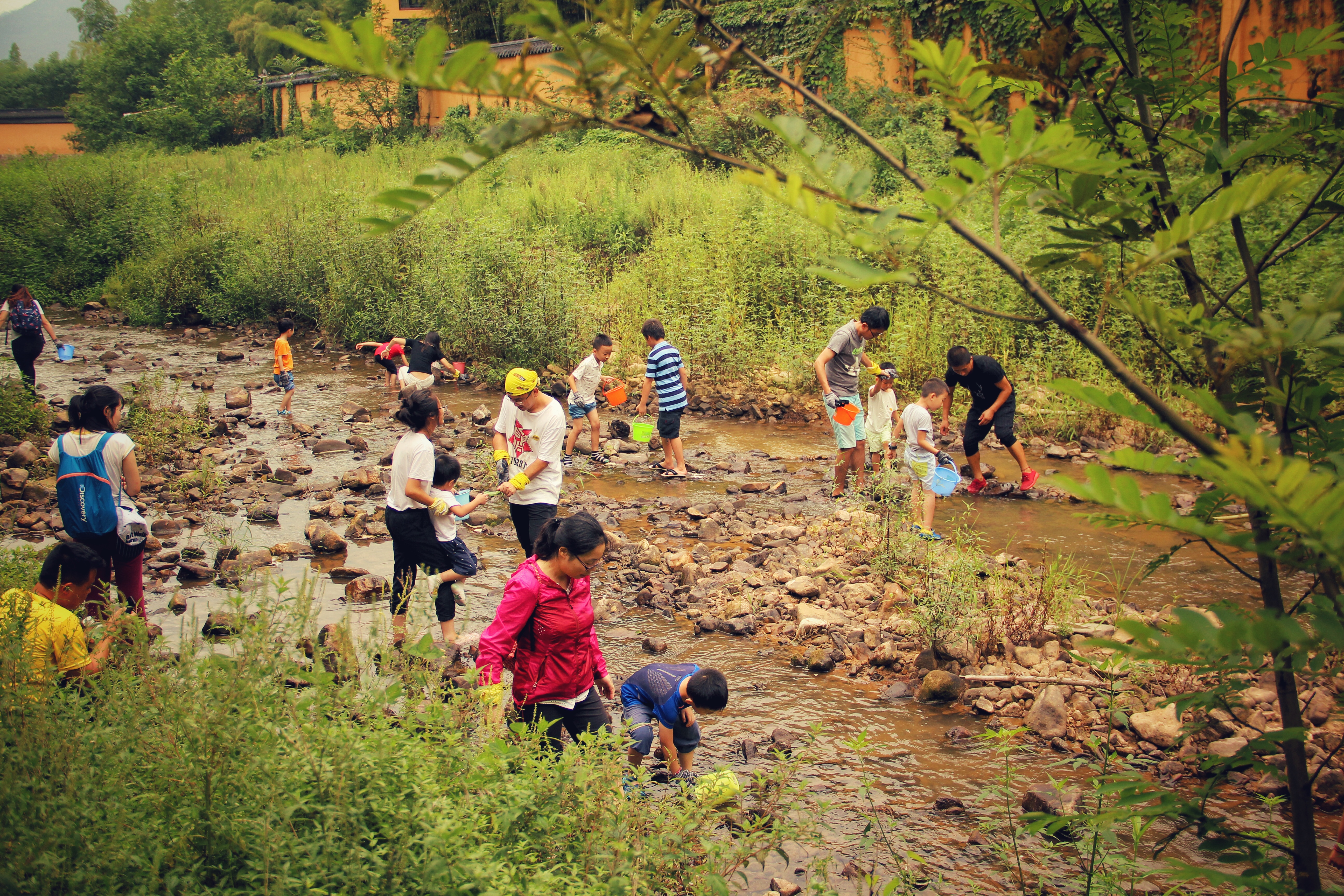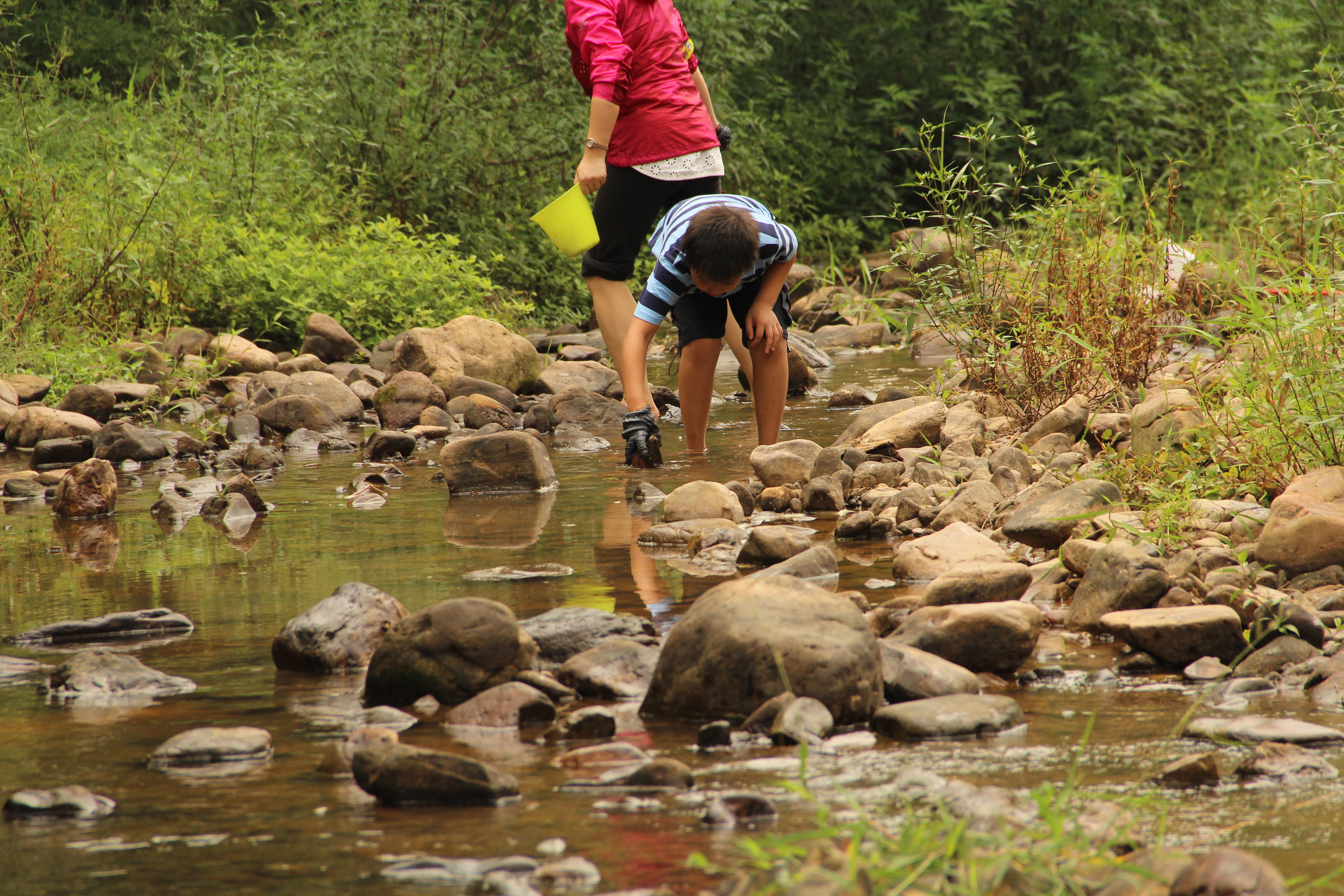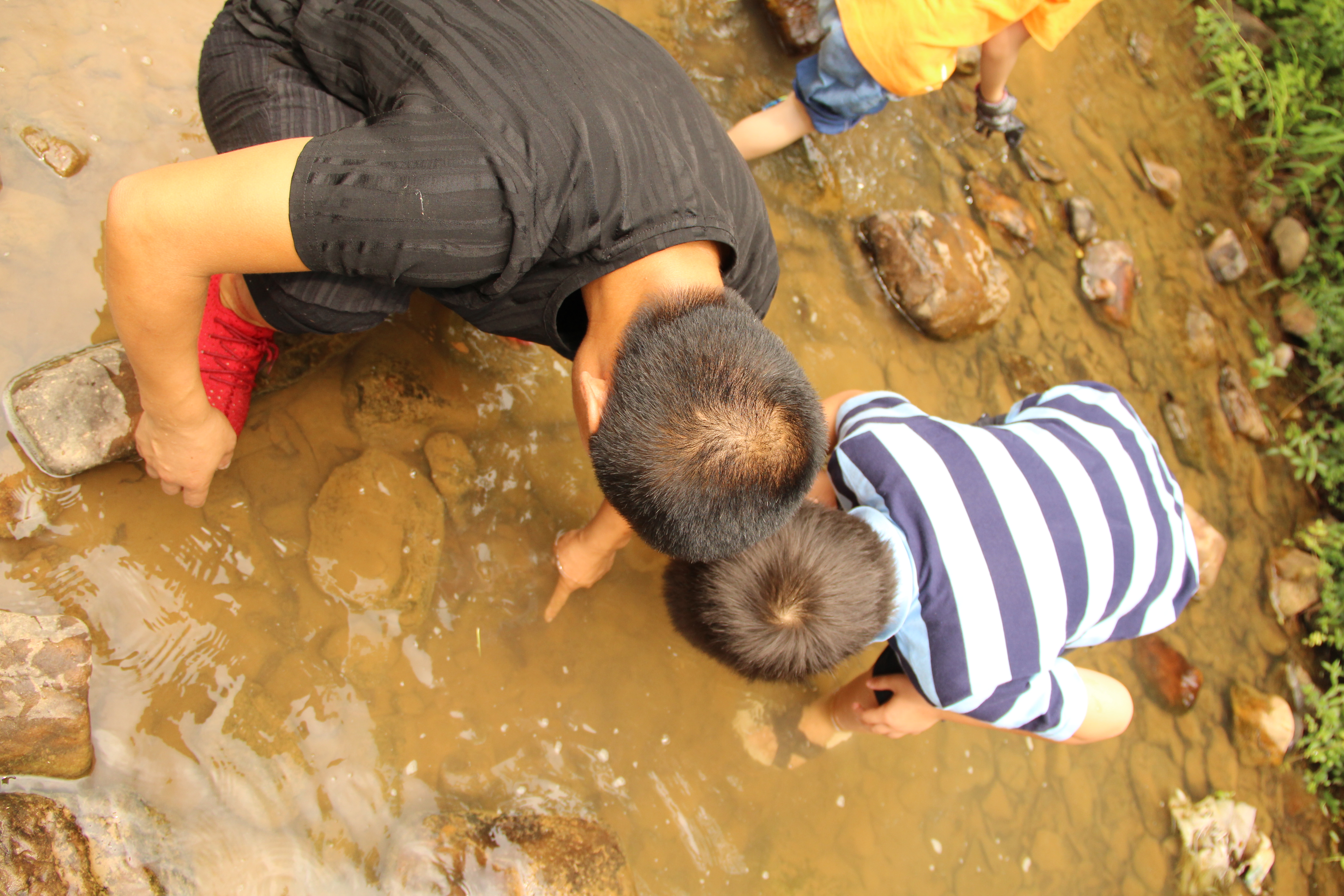 这个时候,已经没有大人孩子之分啦!家长们在小溪里,都快乐单纯得就像是孩子!