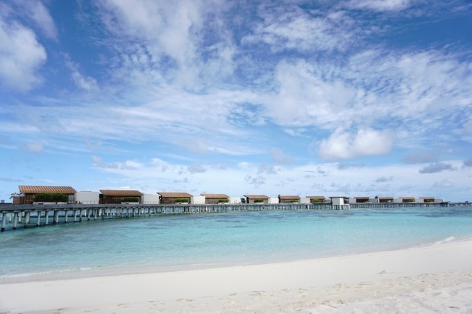 我们居住的19号房间的沙滩,柏悦的沙屋看日出,水屋看日落!19号房间外的沙滩是最合适看日出的地方哦,我们来之前特地给酒店发的邮件,希望是沙屋19,水屋43。酒店当时可能是看成沙屋19,水屋49啦,哈哈,水屋后面几个房间是泳池别墅,价格相比水上别墅更贵哦。好在沙屋真的给安排的19号