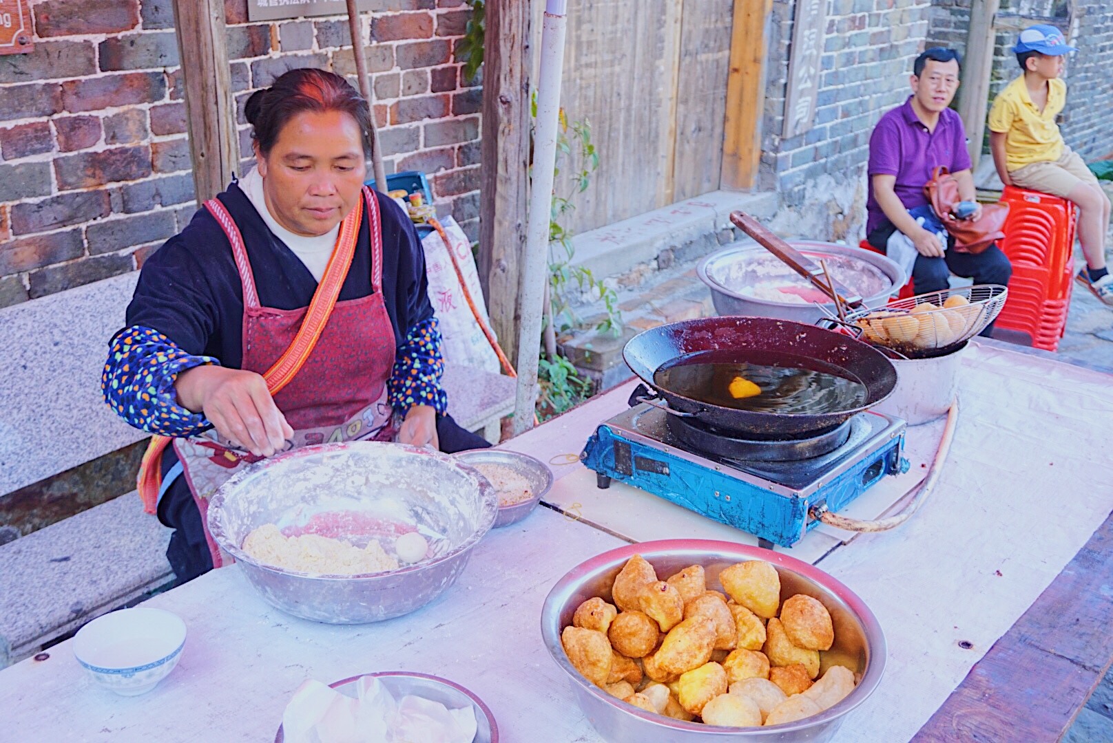 1、瑶寨里有很多当地人摆卖的货物,我喜欢边走边看边淘,累了就路边来一碗山泉豆腐花。