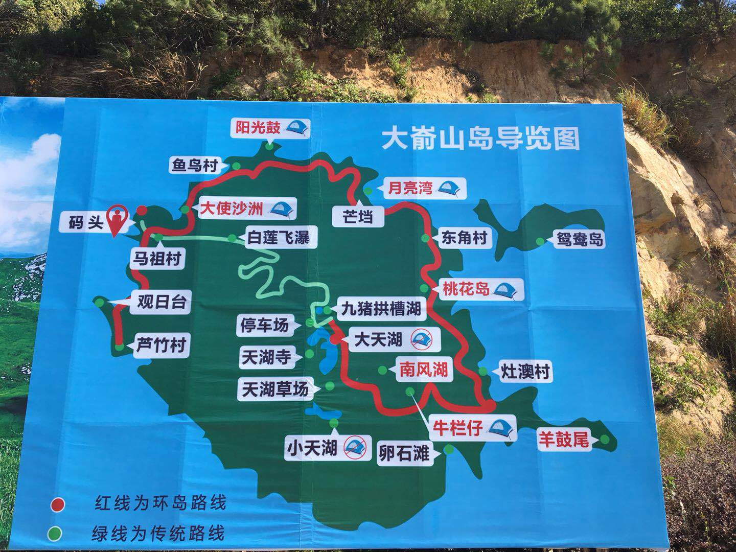 预定好车子,周六一大早到三沙古镇码头(推荐)或者渔井村码头,买快艇票上岛,上岛后联系营地老板(建议露营),安排好住宿。码头午饭后,坐景交车上大天湖景区,适时坐景交车下山(末班车下午5点)。